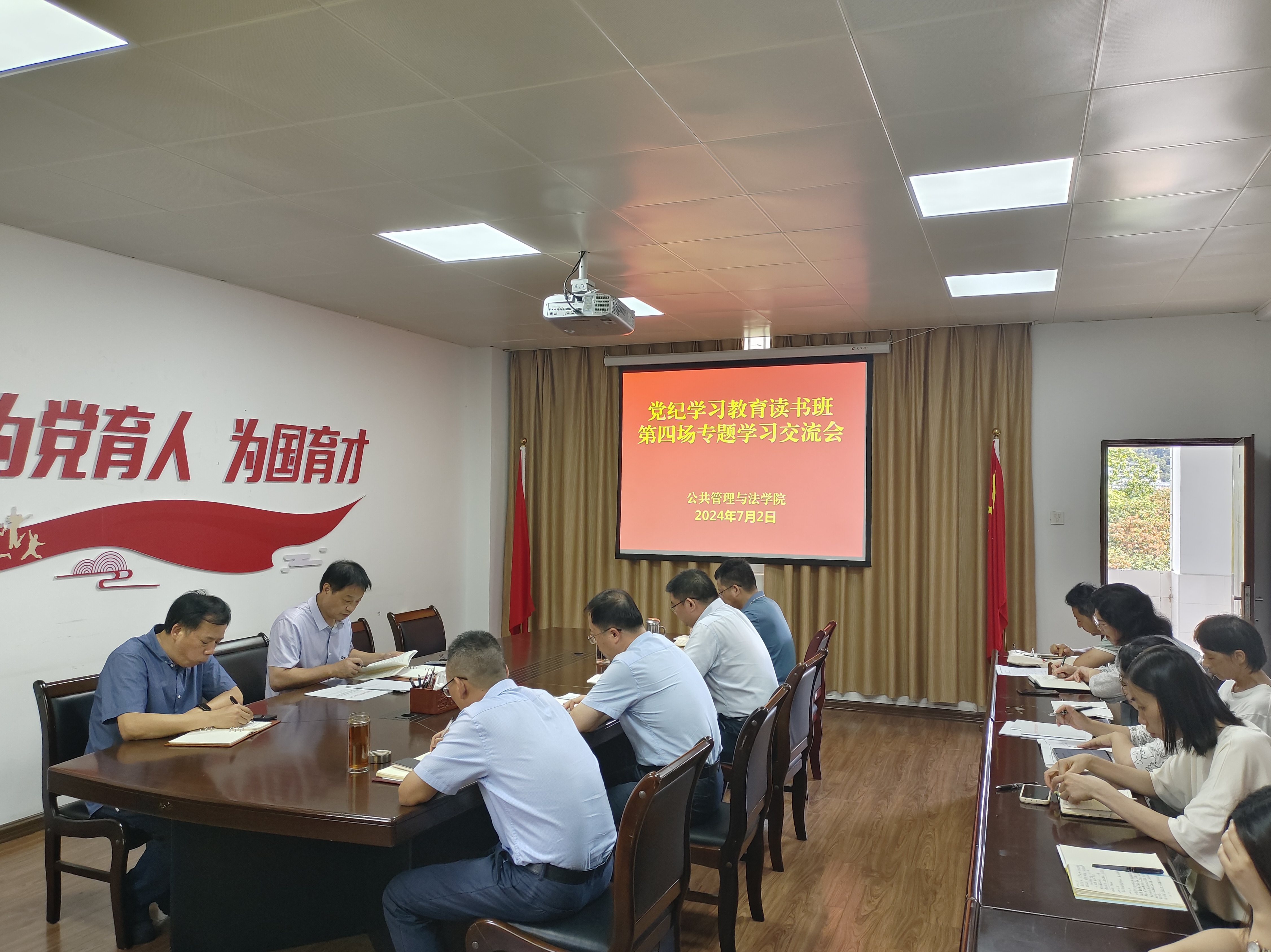 7月2日上午,公共管理与法学院党委召开党纪学习教育读书班第四场专题学习交流会。学院领导班子成员、党委委员、全体行政人员参加会议。会议由学院党委书记曾起郁主持。