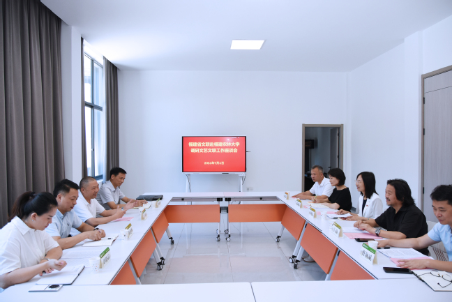 7月4日,福建省文联党组成员、秘书长许瑞生带领组织联络处负责人等一行4人莅校开展文艺文联工作调研,校党委宣传部部长阮晓菁、校文联副主席、风景园林与艺术学院学院教授丁铮以及校团委、学工部相关工作人员陪同调研。