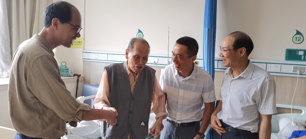 在福建省老年医院住院部,学院领导详细询问了陈老的身体状况和目前治疗情况,认真听取陈老对学院改革发展的意见建议,并转达了全院师生对陈老的美好祝愿,希望陈老安心养病、早日康复,感谢陈老一如既往地关心支持学院发展。