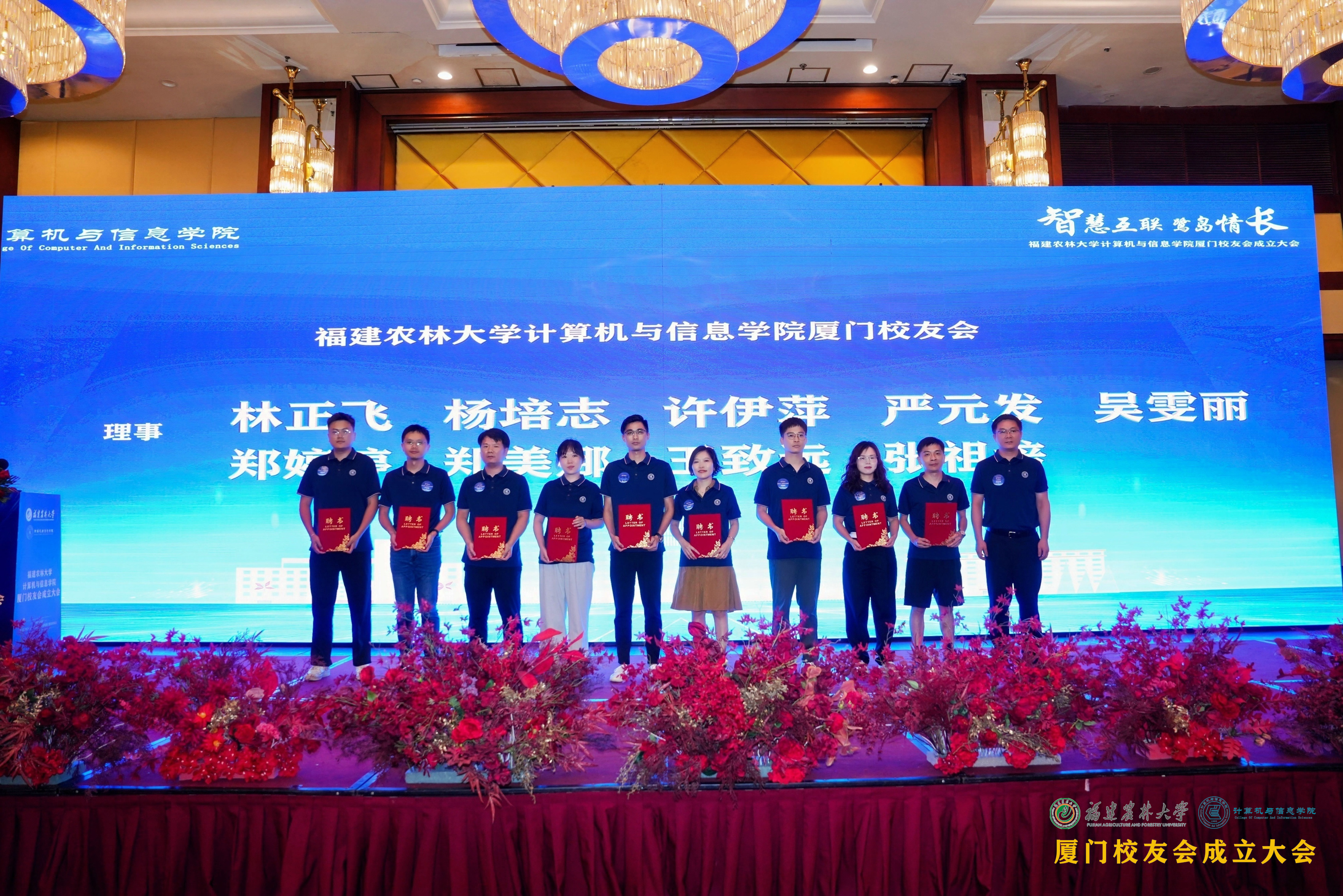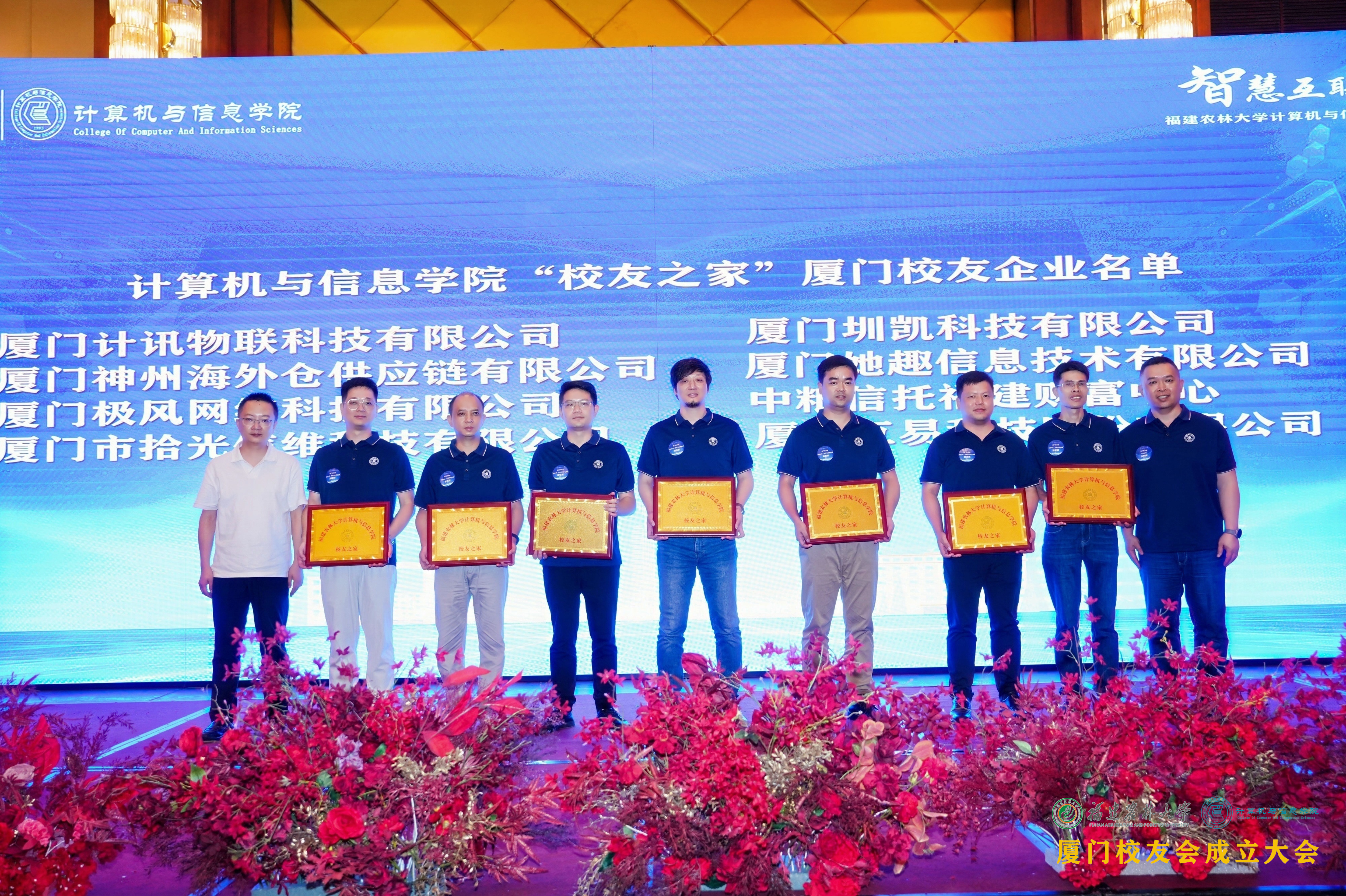 院长陈日清为计算机与信息学院厦门校友会揭牌、颁发聘书。