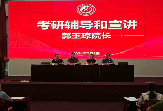 学院院长郭玉琼围绕当前形势就备战研究生考试作了有针对性的辅导与宣讲,帮助考研学子明确学习的目的,进一步明晰备考方向,提高备考效率。她勉励同学们牢牢把握考研复习的黄金阶段,全力以赴,科学安排好时间,坚定信念,取得佳绩。