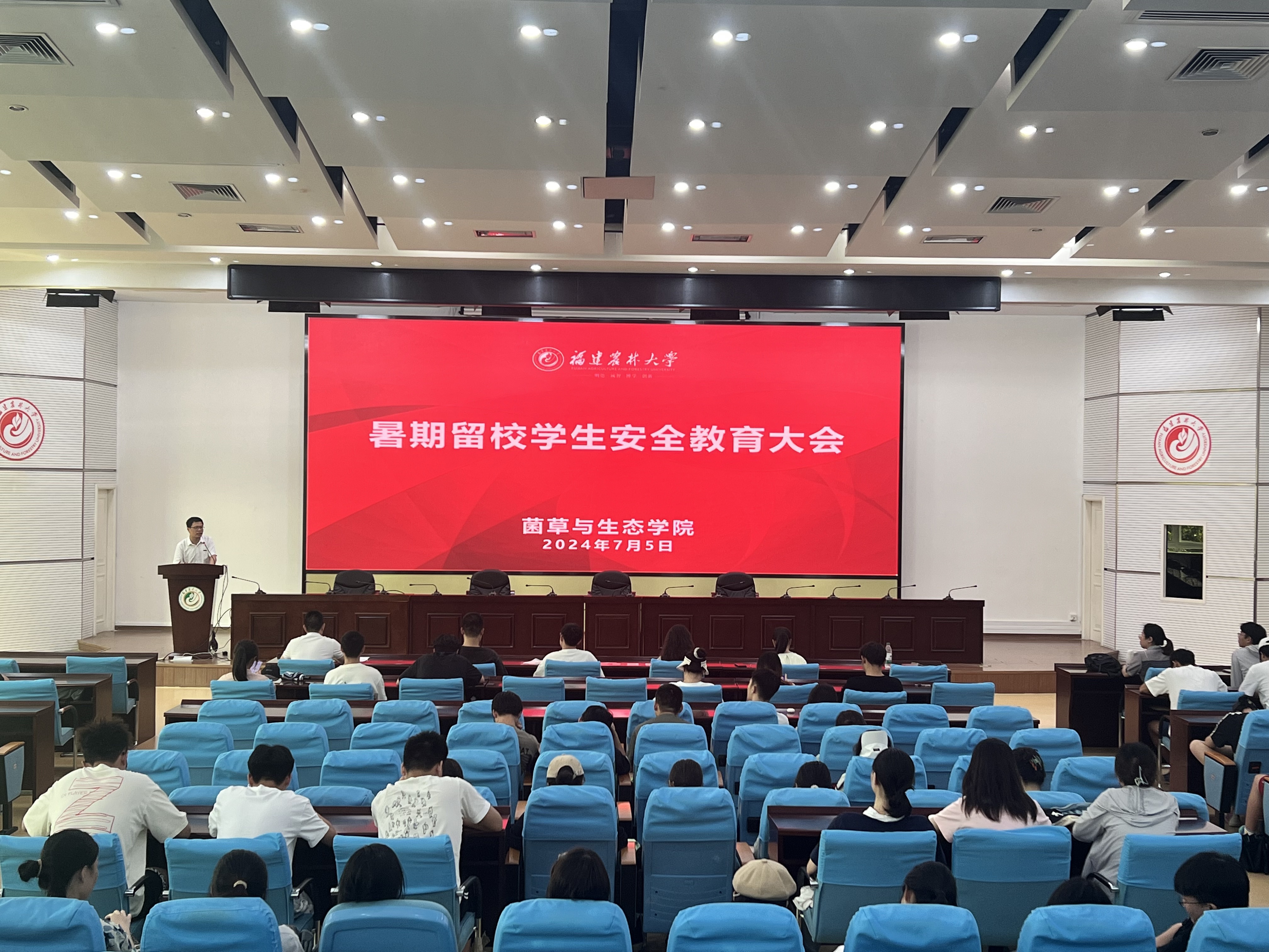 7月5日下午,菌草与生态学院在禧强楼学术报告厅召开2024年暑期留校学生安全教育大会,学院党委副书记李晓辉、全体辅导员和暑期留校学生参加会议。大会由学院团委副书记杨小飞主持。