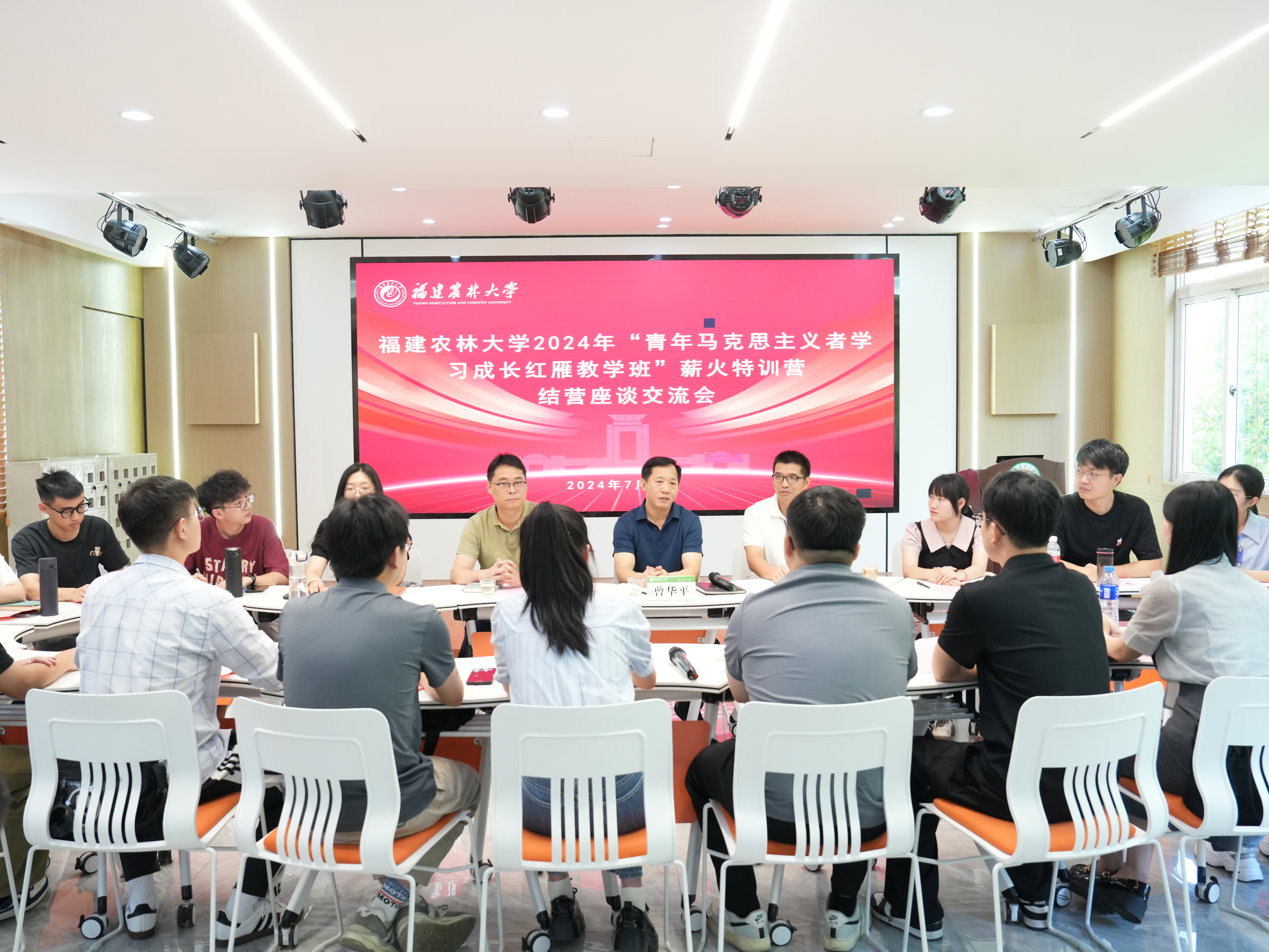 日前,我校2024年“青年马克思主义者学习成长红雁教学班”薪火特训营结营座谈交流会在师生服务大楼303举行。座谈会由学工部部长肖红新主持,校党委副书记曾华平出席活动并讲话。学工部有关同志、学院党委副书记、全体营员共计30余人参加座谈交流。