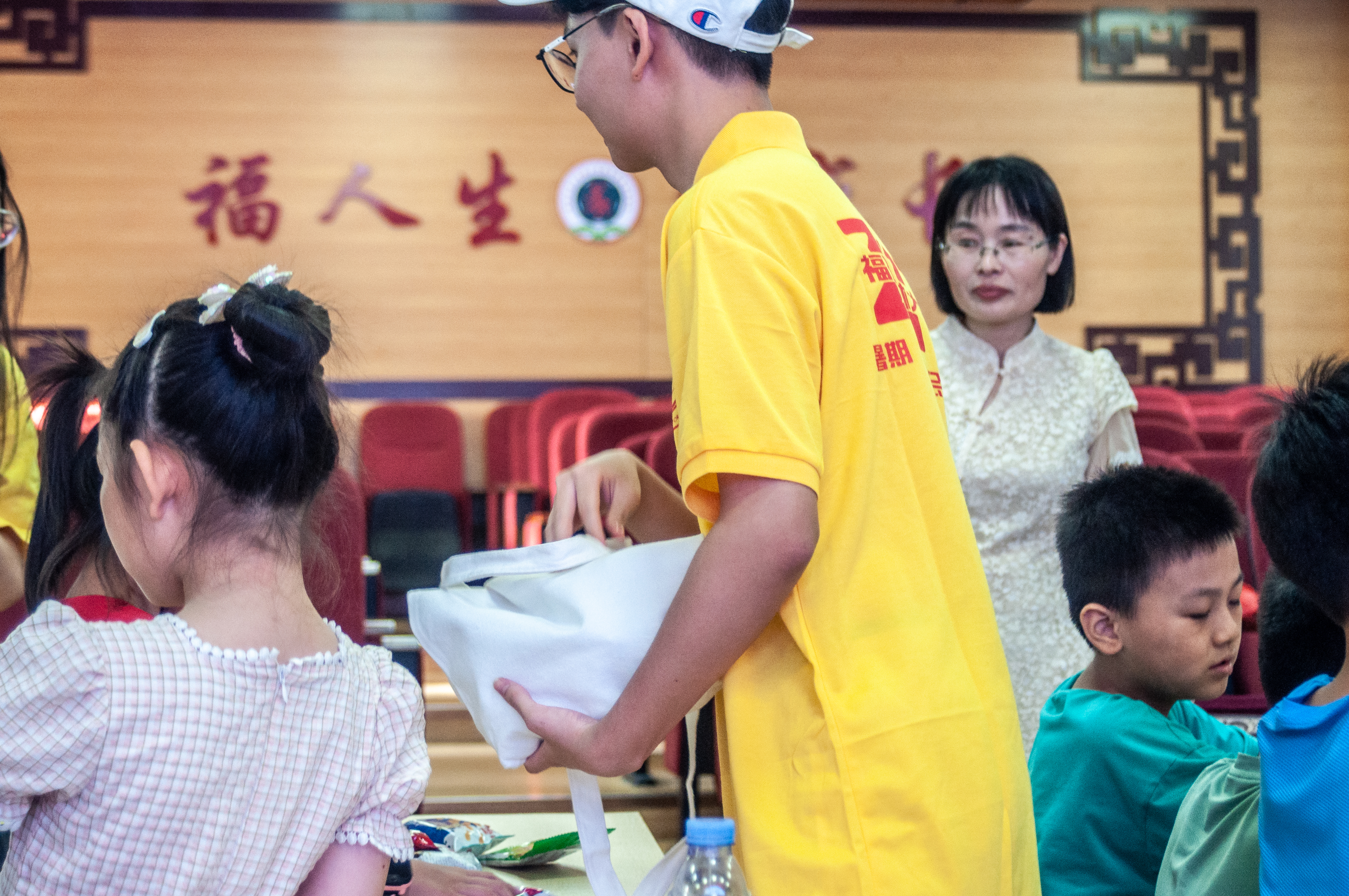 为小朋友发放小礼品