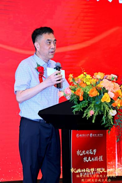 林庆藩首先代表学校和校友总会致辞,向机电工程厦门校友会的成立表示祝贺,并介绍了学校近几年的办学成就,校友是学校的宝贵财富,是检验学校人才培养质量、科研水平和社会服务效果的重要体现,他希望广大校友们加强交流互动,增进友谊,互帮互助,促进共同发展,促进地方经济繁荣和学校各项事业发展贡献力量,同时让校友会成为校友交流的重要平台,成为校友和学校以及社会各界交流的重要纽带。