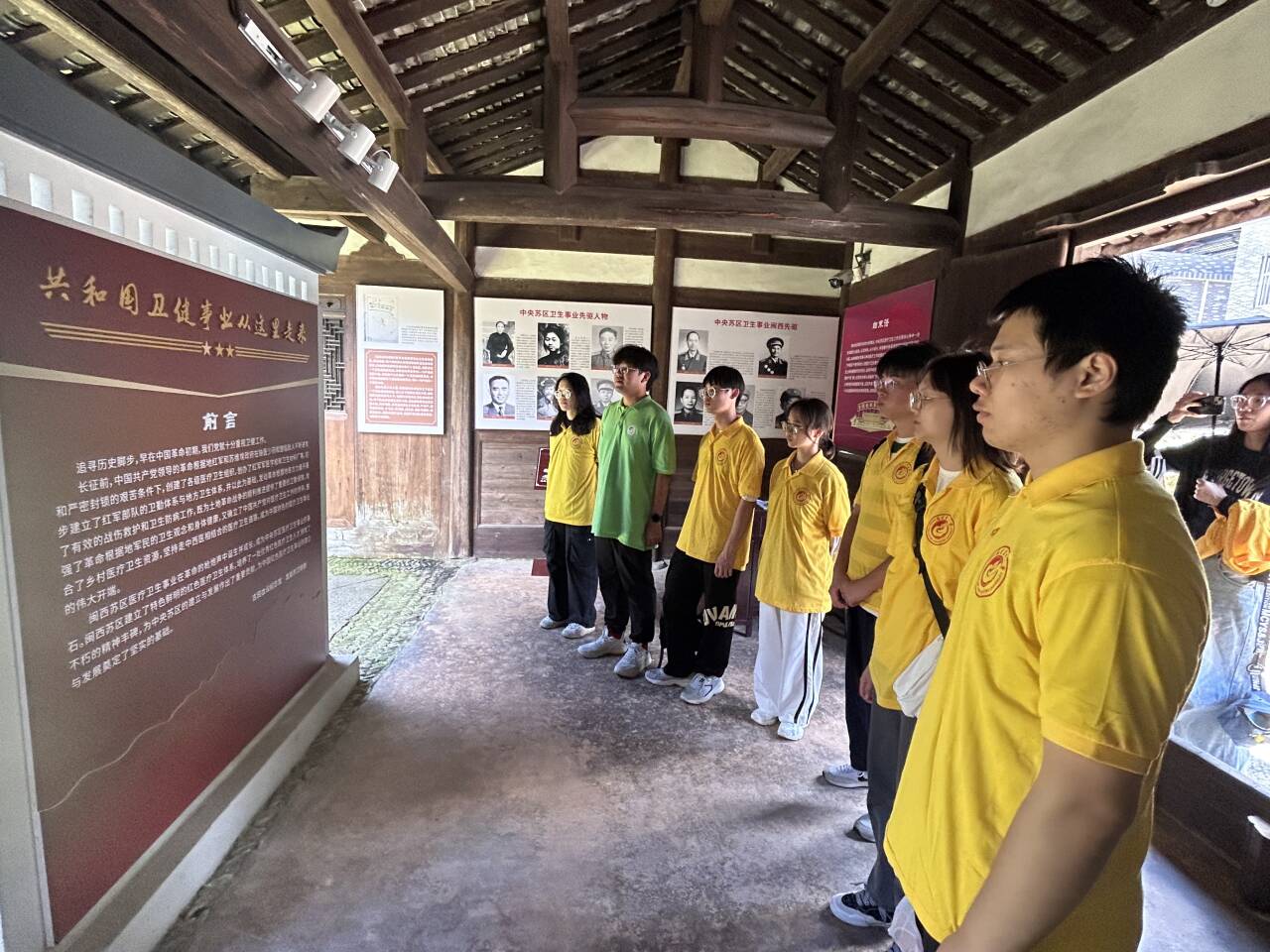 实践队在堂中依次参观了解军医处的成立历史、红四军军医人物简介、简陋的医疗装备与医疗条件。古老的建筑,虽历经风雨的侵蚀,却依然散发着坚韧和庄重的气息,无不展现了困难险阻下,红四军军医始终如一的医者仁心,令大家深感钦佩。