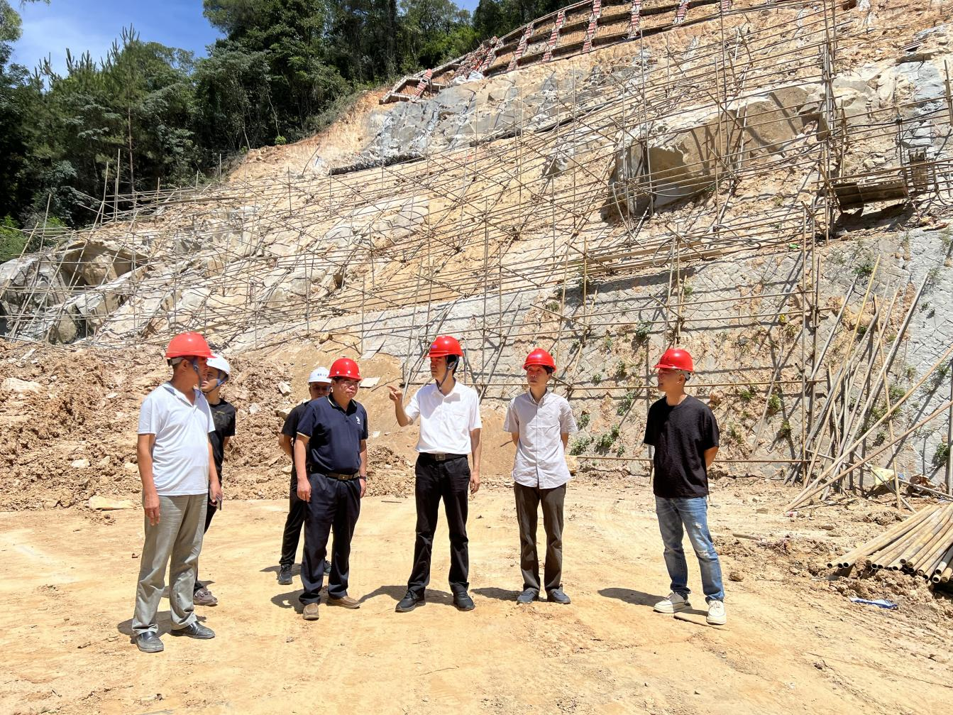 林庆藩副校长先后实地查看北区5#总电房后、菌草中心后山体崩塌工程治理项目两个地灾治理项目和国家菌草工程技术研究中心大楼建设项目实施进展情况,并结合实际提出三点工作要求:一要始终把安全放在首位,要按照校党委工作部署切实抓好暑期安全稳定工作,在建项目要加强安全文明施工管理,加强现场人员的安全教育工作,及时消除各类安全隐患;二要始终把民生安在心上,积极做好施工项目周边建筑的防护和地灾点整治工作,消除各类地灾和建筑安全隐患,并最大限度降低对师生学习、生活的影响,保障师生人身安全;三要始终把管理做到细致,要注重协调各方,有效做好防暑降温工作,在有限施工条件下抓紧施工,确保项目进度和质量相统一。