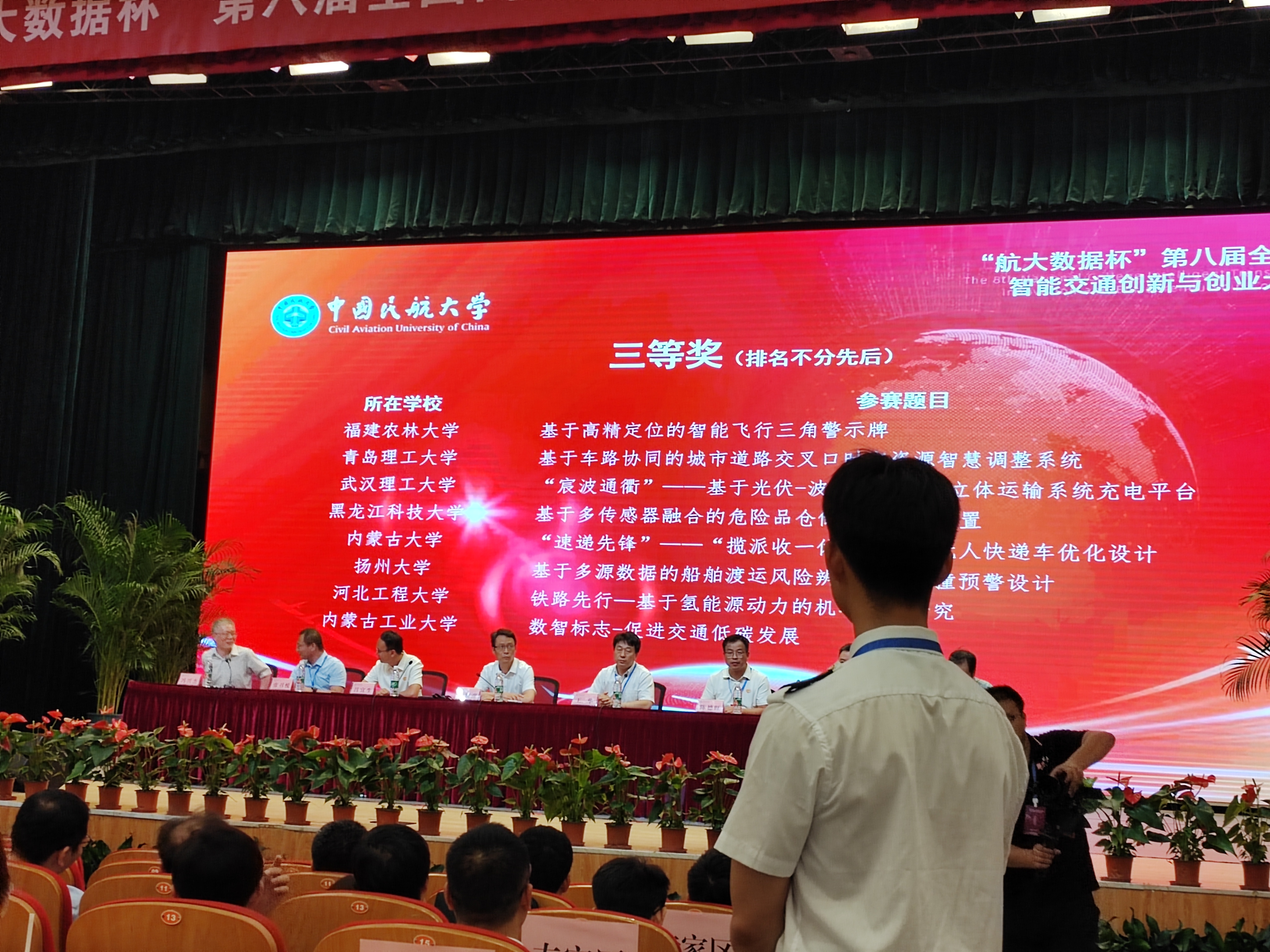 7月12至13日,第八届全国高校智能交通创新与创业大赛在中国民航大学圆满落幕,来自78所高校的34个研究生队伍作品和102个本科生队伍作品入围决赛,同台竞技。经激烈角逐,交通与土木工程学院作品《基于高精定位的智能飞行三角警示牌》(参赛学生:李佳明、方永强、周楷程、柳洋、郑怡灵,指导教师:黄海南、李瀚林)斩获本科生组别主题竞赛赛道全国三等奖。