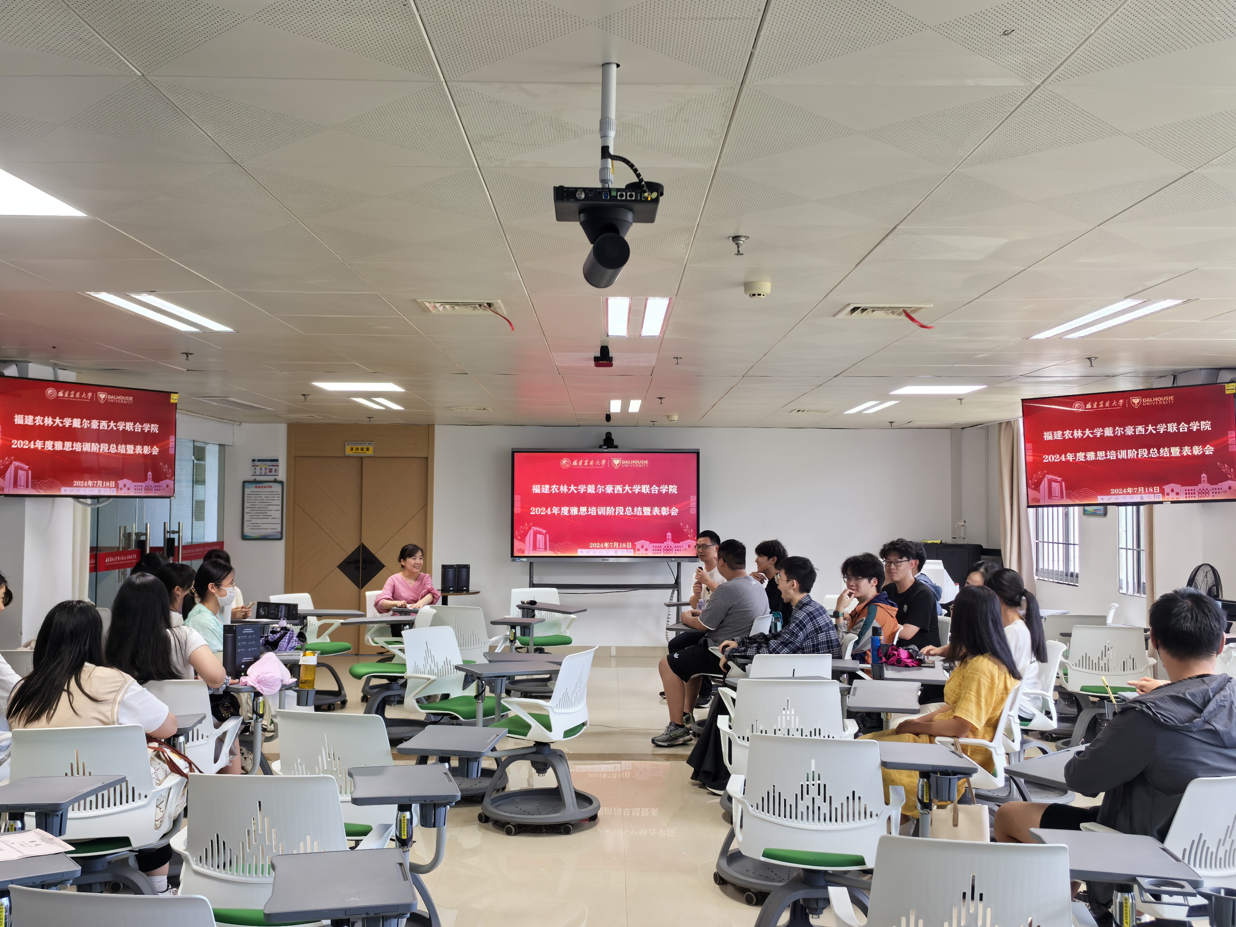 7月18日,戴尔豪西大学联合学院(国际学院)于综合楼810举办2024年度时期雅思培训阶段总结暨表彰会,全体暑期雅思培训班学员参会,会议由英语培训教学部主任叶明光主持。学院副院长刘丽敏、福州新东方国际教育培训中心林观斌、辅导员陈刘嘉懿参加会议。