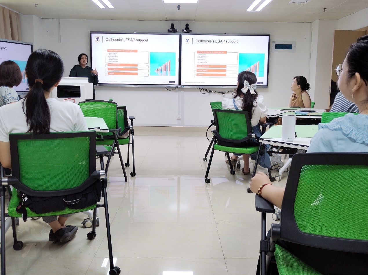英语教学作为中加合作办学项目的关键组成部分,一直受到戴尔豪西大学联合学院(国际学院)的高度重视。学院不仅注重英语教师的职业成长,也致力于提升中加项目的英语教学质量。在过去几年中,两校之间的语言教师交流日益频繁,2023年我校成功派遣了两位教师前往戴尔豪西大学语言中心完成研修任务,此次戴尔豪西大学语言中心主任亲自前来对学院英语教师进行培训,进一步加深了双方的合作关系,也为联合学院新学期英语教学工作的展开奠定了坚实的基础。