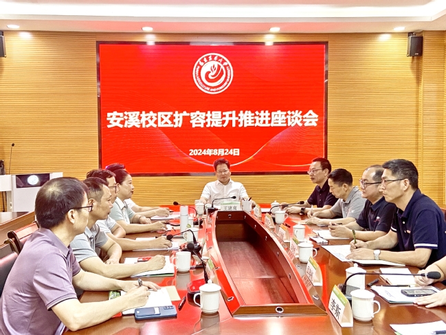 8月23—24日,校党委书记王建南到安溪校区调研,了解安溪校区扩容工程学生宿舍建设进展情况,检查新学期各项工作准备情况,召开安溪校区扩容提升推进座谈会。