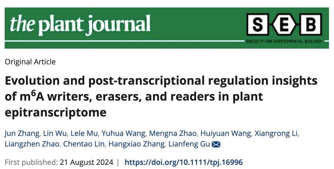近日,未来技术学院 海峡联合研究院顾连峰教授课题组在《植物杂志》Plant Journal期刊在线发表了题为“Evolution and post-transcriptional regulation insights of m6A writers, erasers and readers in plant epitranscriptome”(植物表观转录组中N6-甲基腺嘌呤甲基转移酶、去甲基化酶和结合蛋白的进化与转录后调控研究)的论文。该研究利用系统进化研究和纳米孔单分子测序技术,对植物中m6A调控元件及其修饰进行了全面的进化和功能分析。