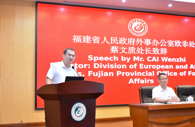 蔡文质指出,中非双方的友好交往源远流长,福建作为中国面向亚太地区的重要门户、中国古代海上丝绸之路的重要起点,与非洲的渊源十分深厚。福建和非洲不仅人员往来密切,同时经贸往来非常频繁,南非德班理工大学孔子学院就是一个最好的证明。希望德班孔院师生进一步深入学习领会习近平主席重要复信精神,深入了解福建省情、中国国情,在未来的学习工作中,努力做传承发展两国友好事业的使者,为增进中非两国青年间的友谊作出积极贡献。