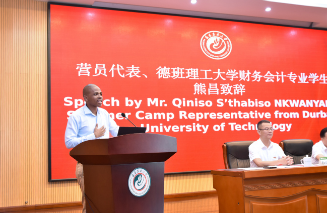 夏令营营员代表熊昌(Qiniso S'thabiso NKWANYANA)发言