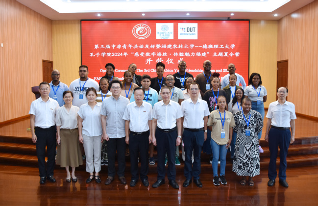 受校党委书记王建南、校长兰思仁委托,郑宝东代表学校致辞,对远道而来的孔院师生表示热烈欢迎。他指出,在2024年中非合作论坛北京峰会举行之际,第9届开云网页版-德班理工大学孔子学院夏(冬)令营开营了,这是进一步贯彻落实国家主席习近平给南非德班理工大学孔子学院师生复信精神的实际行动,也是贯彻落实省委省政府工作要求的具体举措。本次夏令营以“感受数字海丝·体验魅力福建”为主题开展一系列参访研学活动,更加聚焦中非合作,更加突出福建特色,将给大家带来不一样的体验。希望通过此次活动,孔院师生们能更加深入地认识和了解福建,了解福建在数字化转型中的现在与未来,见证福建在海丝建设中的辉煌与传承和发展;希望孔院师生们进一步学好中文,提高语言水平,体验中华文化,在开云网页版、在福建各地多结交朋友,让中南青年友谊之树常青,推动两国同志加兄弟友谊长存;希望孔院师生们把中国之行的所学所思、所见所闻,把一个真实、立体、全面的中国,介绍分享给更多的朋友,努力做中南文化的传播者、中南合作的贡献者、中南友谊的促进者。