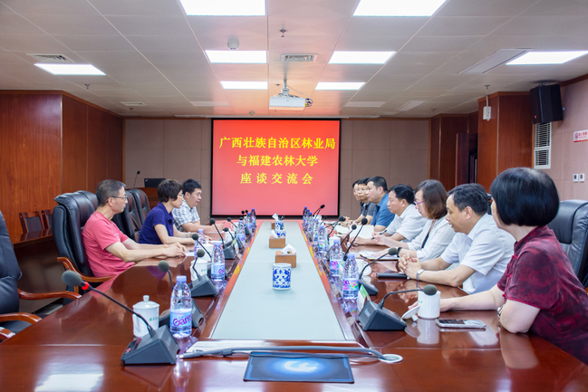 兰思仁代表学校对蒋迎红一行的到来表示热烈欢迎,感谢广西壮族自治区林业局对学校工作的支持。他表示,长期以来我校与广西开展了广泛深入的交流与合作,在甘蔗、林下经济、木材加工、养蜂等领域取得了良好成效。希望双方加快推进战略合作协议签署和落地,充分发挥各自优势,在学科和平台建设、人才培养等方面深化合作,推动我校“双一流”建设和广西林业高质量发展。
