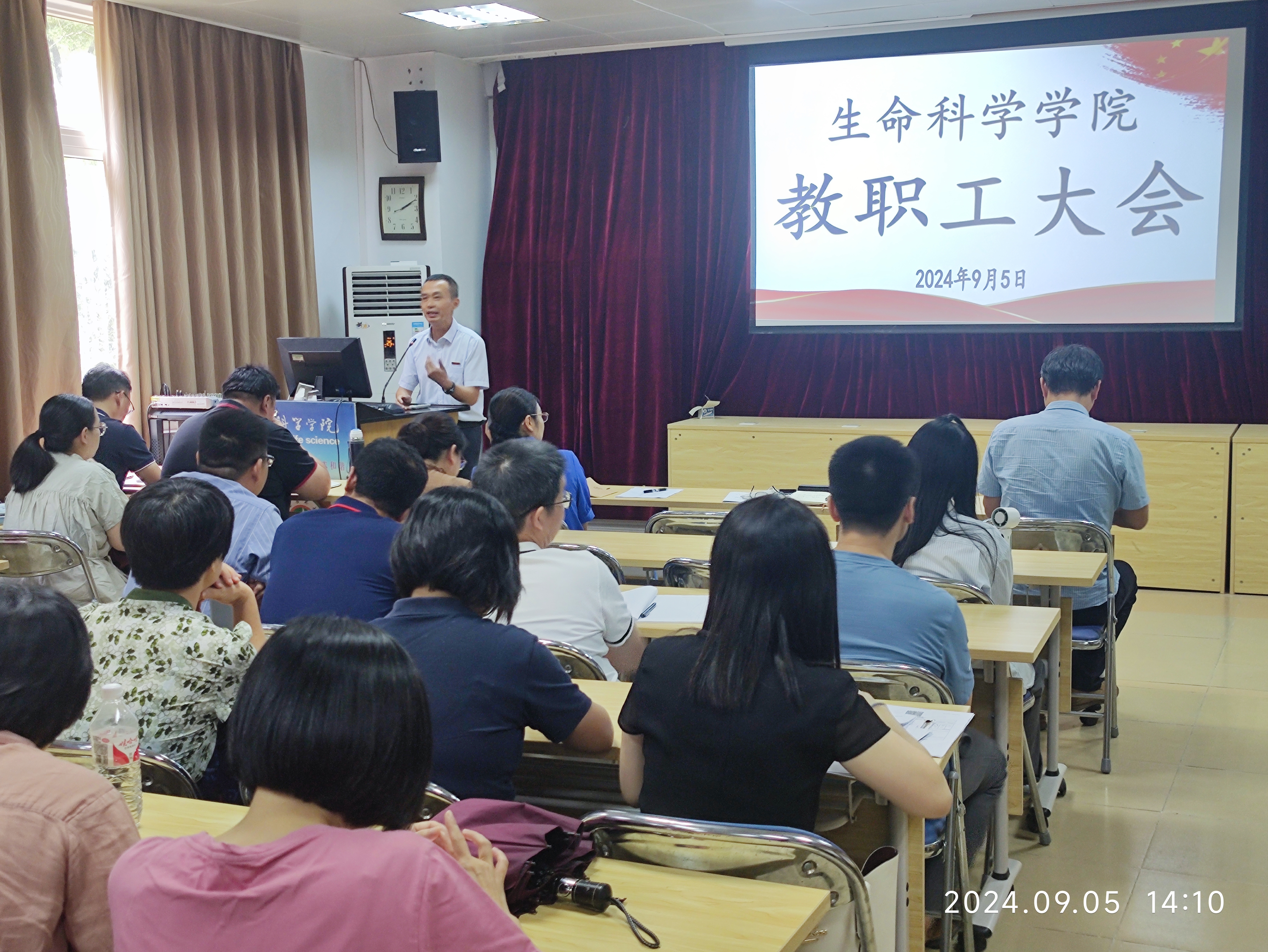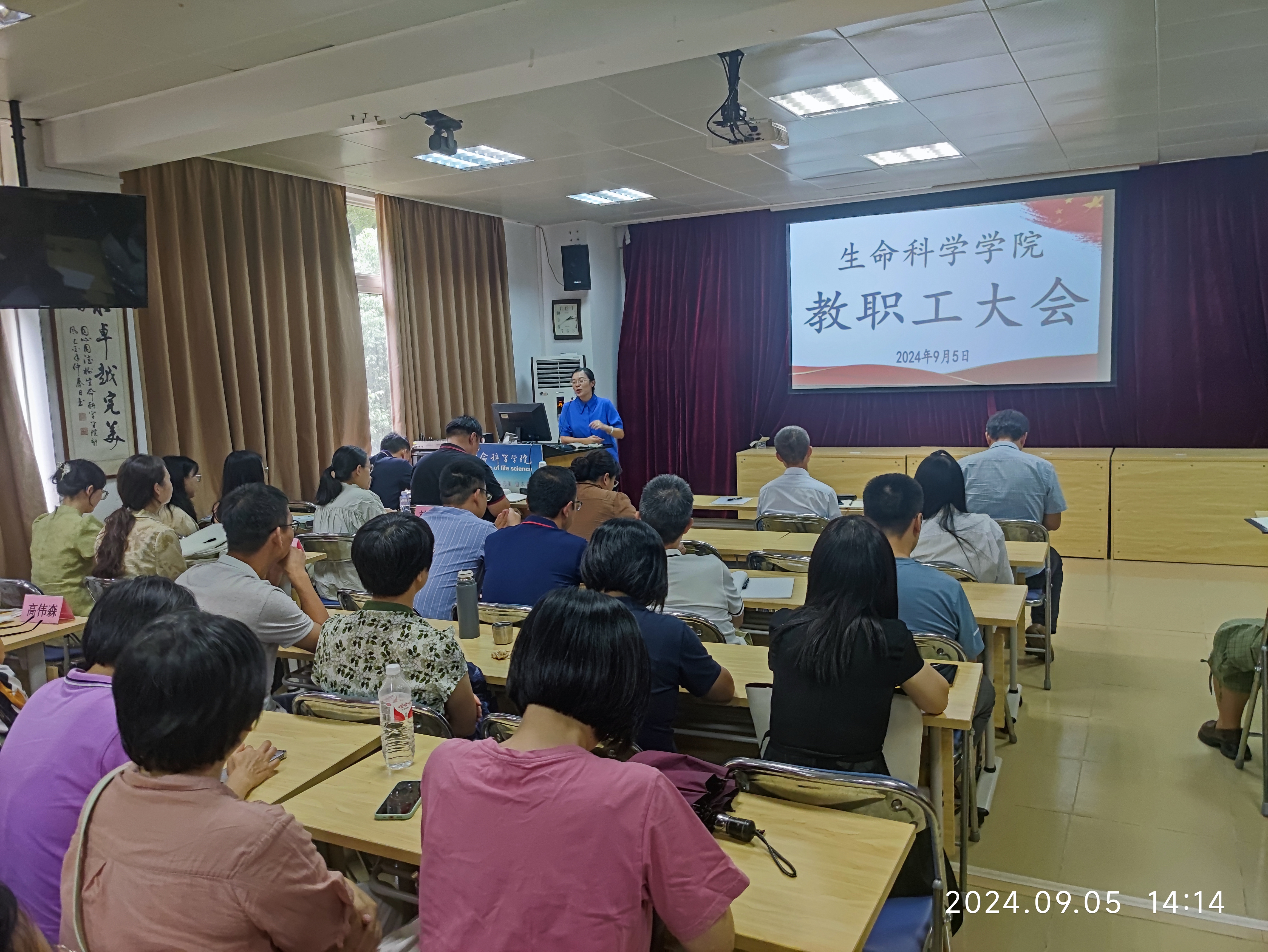 9月5日下午,生命科学学院在生科楼414召开教职工大会暨新学期工作会议,学院全体教职工参加,会议由学院党委副书记刘强主持。
