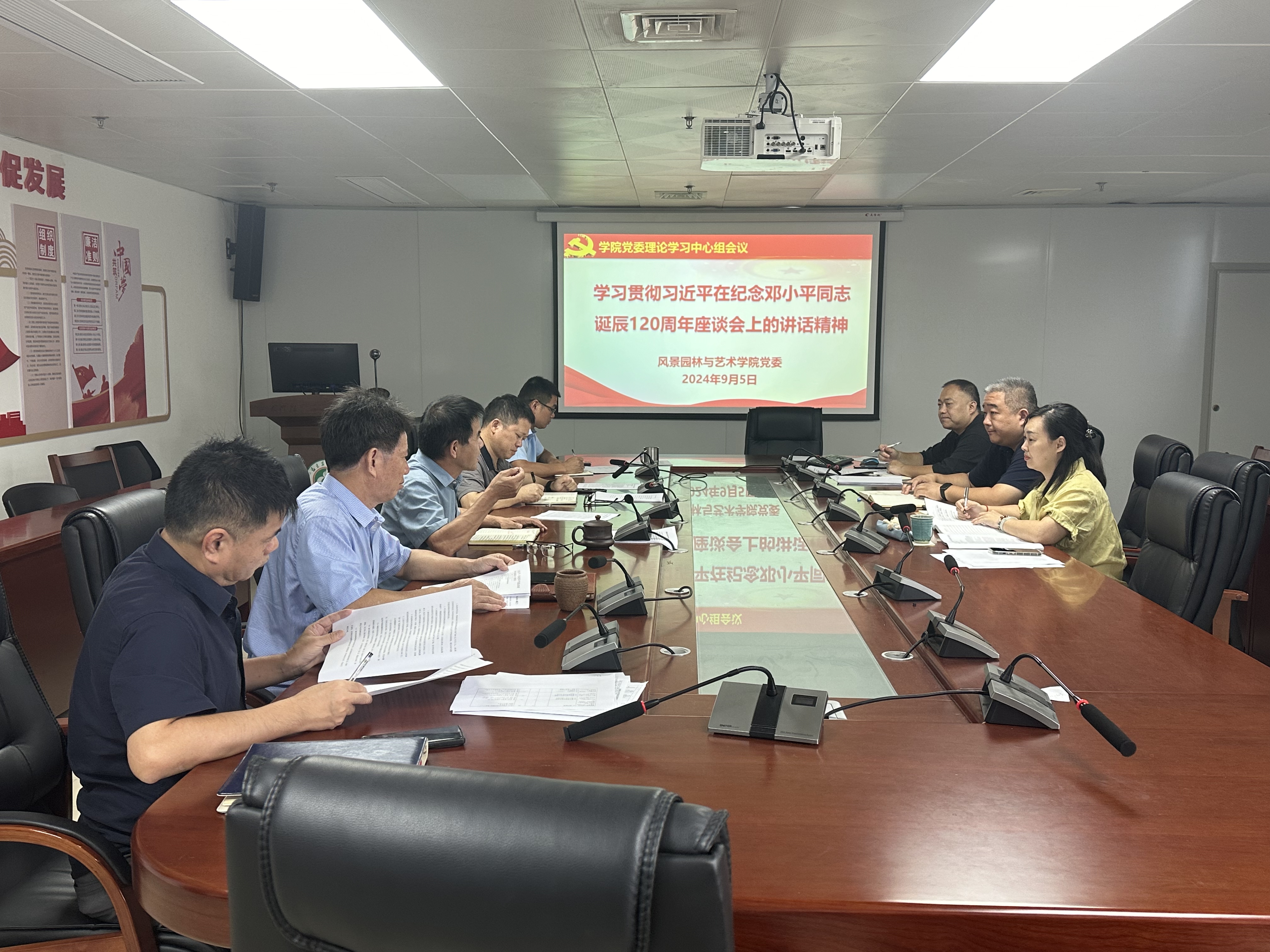 9月5日上午,风景园林与艺术学院党委召开理论学习中心组学习会,学习习近平总书记在纪念邓小平同志诞辰120周年座谈会上的重要讲话精神,学院理论学习中心组成员参加会议,会议由学院党委书记雷国铨主持。