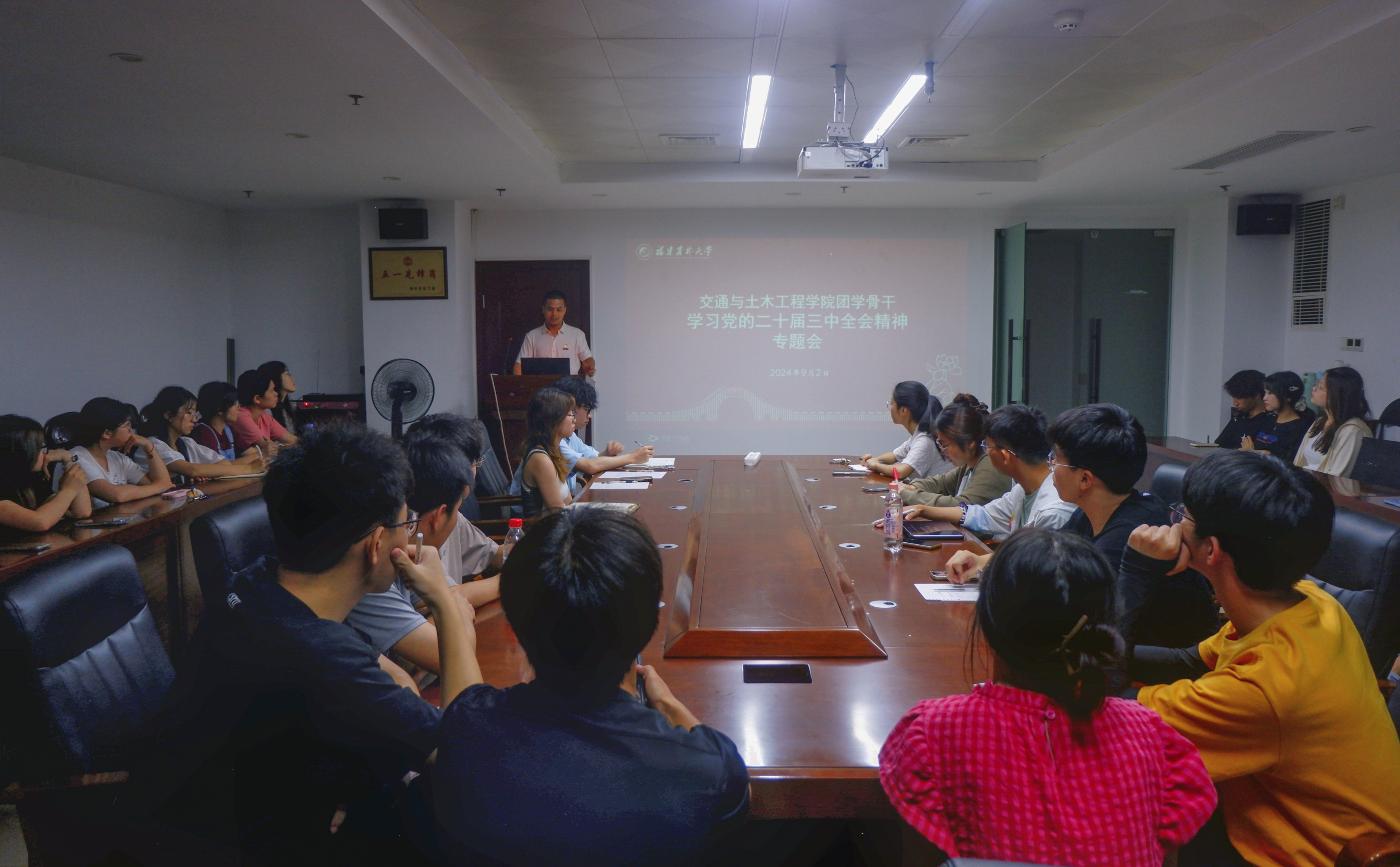 9月3日晚,交通与土木工程学院团委在旗综501召开新学期团学工作会议暨团学骨干学习党的二十届三中全会精神专题会。学院全体团学骨干参加会议,会议由院团委书记叶善斌主持。