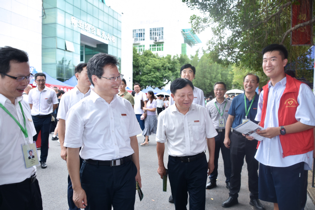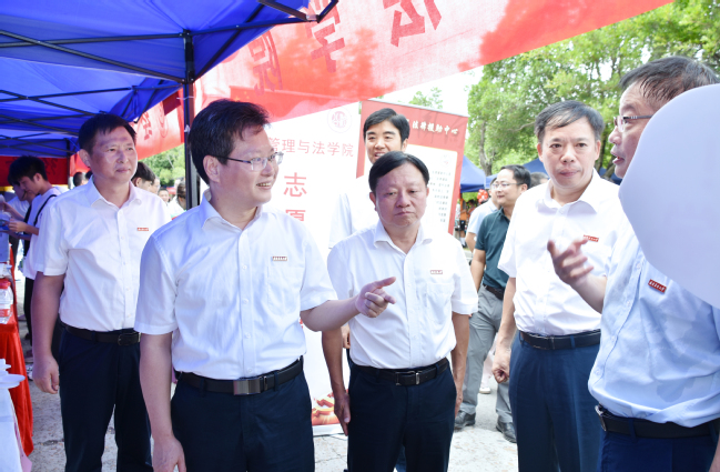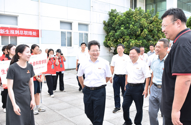 校领导一行先后来到学校迎新总联络处和各学院的迎新接待点,详细了解学校各校区与各学院新生的报到进展情况,并与正在办理报到手续的本科新生及家长亲切交谈,“你来自哪里?”“今天刚到吗?”“你是什么专业的?”,并代表学校欢迎学生和家长的到来,勉励本科新生尽快适应新角色,融入大学新生活,争做有理想、敢担当、能吃苦、肯奋斗的新时代好青年。当听到不少学生来自内蒙古、云南、台湾等地,跨越山海、远道而来,校领导也请家长们放心,学校将会为学生成长成才创造良好的环境。校领导还亲切询问前来报到的研究生情况,勉励他们志存高远、开拓进取,珍惜青春韶华,练就过硬本领,勇担时代重任。