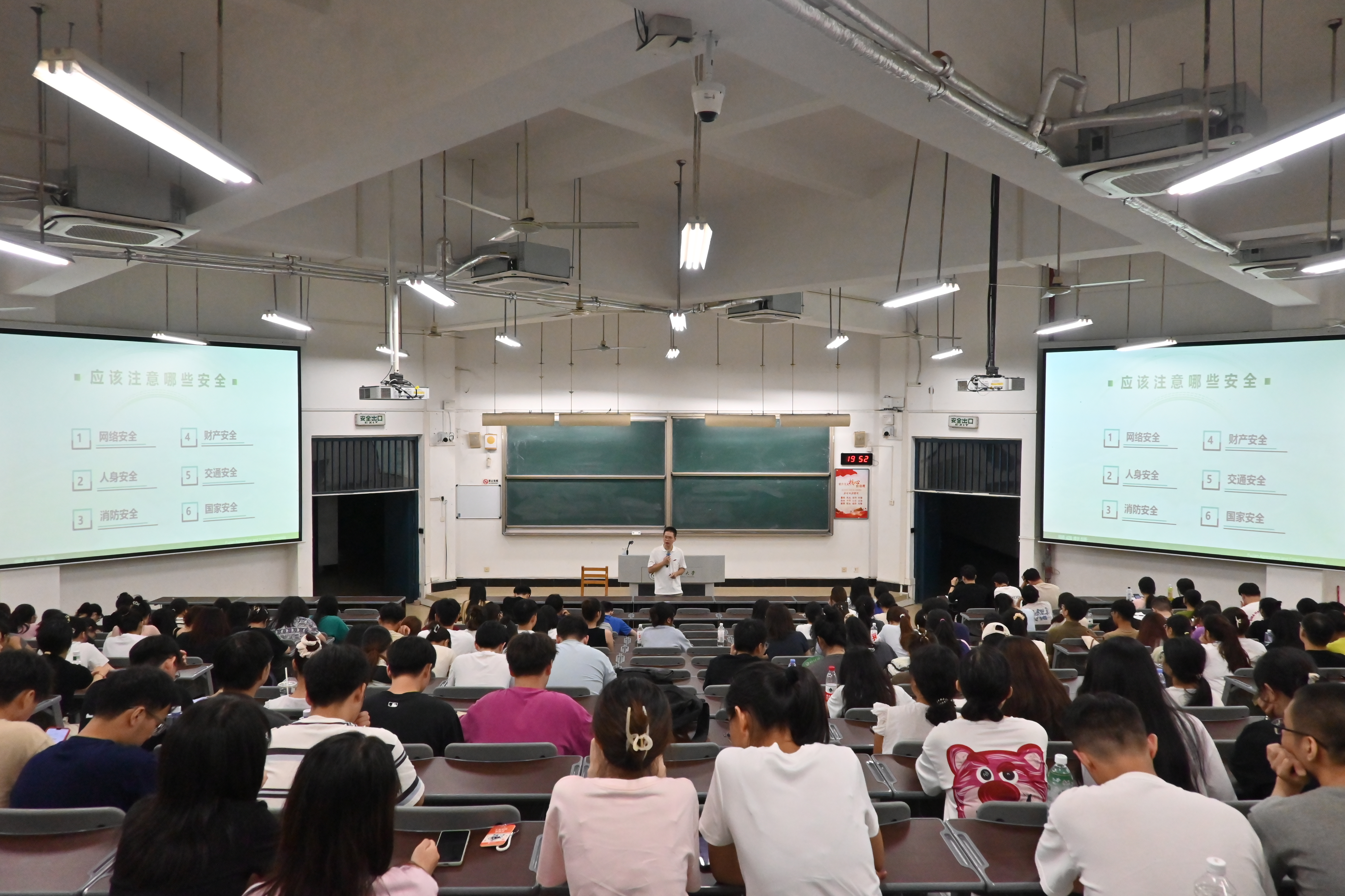 吴有平代表学院欢迎新同学的到来,并强调了安全教育的重要性,对新生入学安全工作做了部署。随后,辅导员围绕“人身财产安全防范”“交通安全知识普及”“防火防灾技能培训”“网络安全教育引导”“国家安全与意识形态安全”等五个方面进行了系统讲解,通过概念分析、案例讲述、现场互动等形式进行补充,结合近年来频发的热点案件,强化了新生的安全意识,在入学之日就给同学们敲响安全警钟。