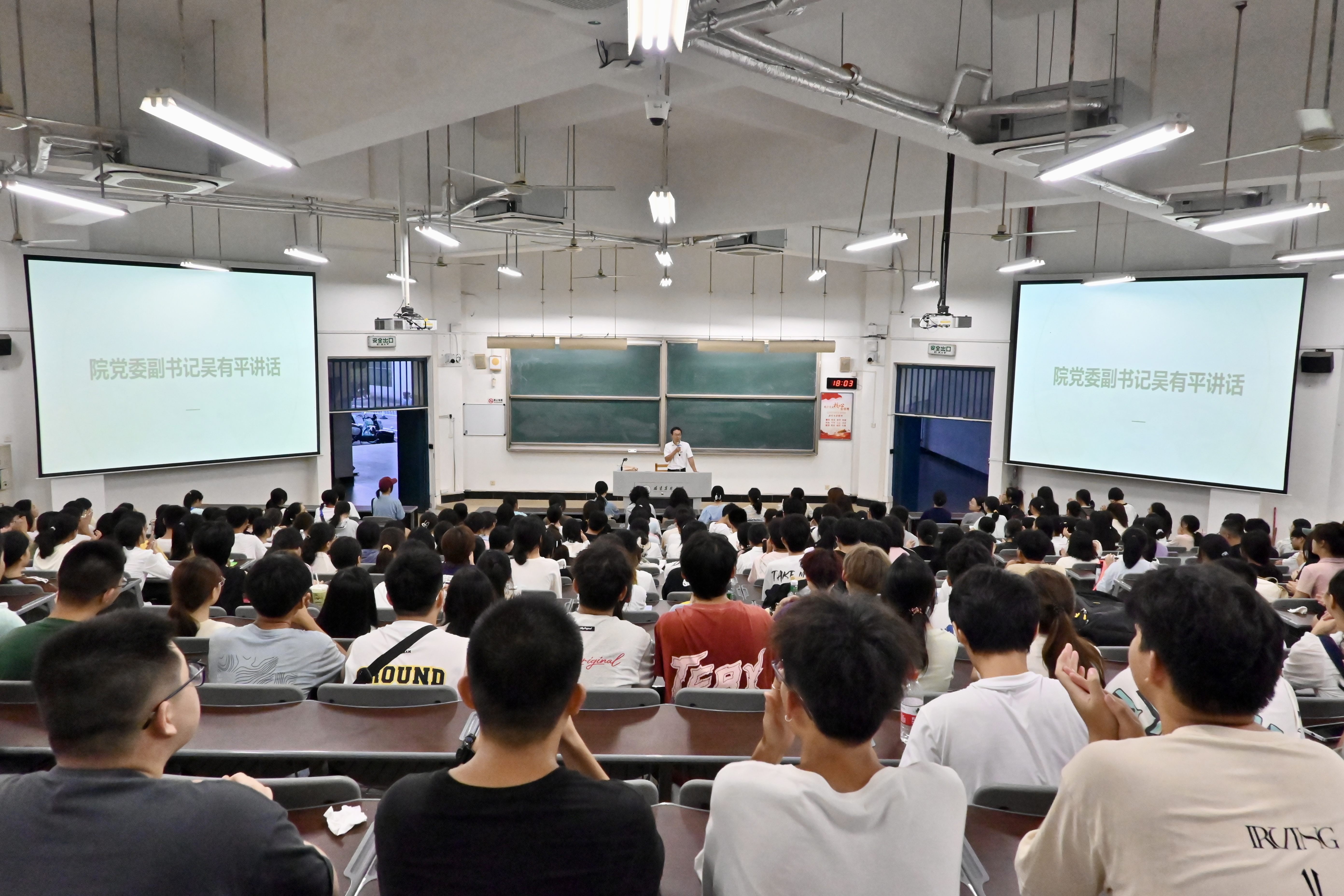 为进一步增强食品科学学院2024级新生的安全意识,切实筑牢保障学生身心健康发展的安全防线,根据学校安排,9月7日晚,学院在创新楼102教室召开2024级新生安全教育大会暨“安全教育周”系列活动。活动由辅导员林河晨、陈文滔主持,院党委副书记吴有平到会讲话,全体2024级新生参加。