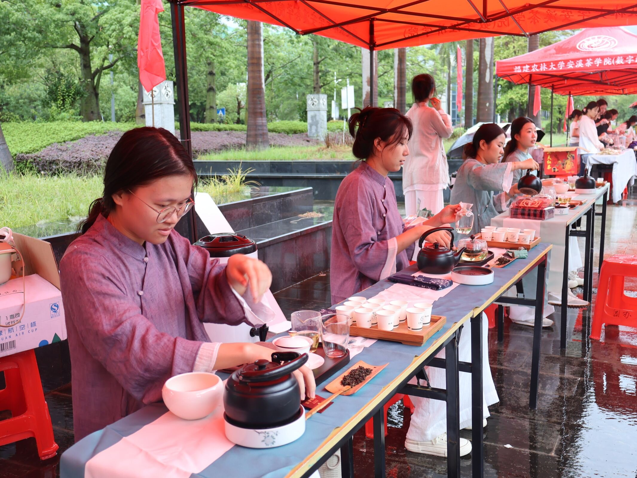 迎新现场,充满朝气的迎新横幅引人入胜,别具特色的创意展板整齐摆放,校园里洋溢着热烈的氛围。2024级新生在工作人员的引导下领取新生礼包,办理好入学登记,随后在志愿者的帮助下搬运行李,现场有条不紊,井然有序。此外,学院结合茶学专业办学特点,在现场设置新式茶饮摆点,向广大新生及家长提供特色茶饮、茶点,在展现茶文化魅力的同时进一步体现出学院深厚的文化底蕴与人文关怀。