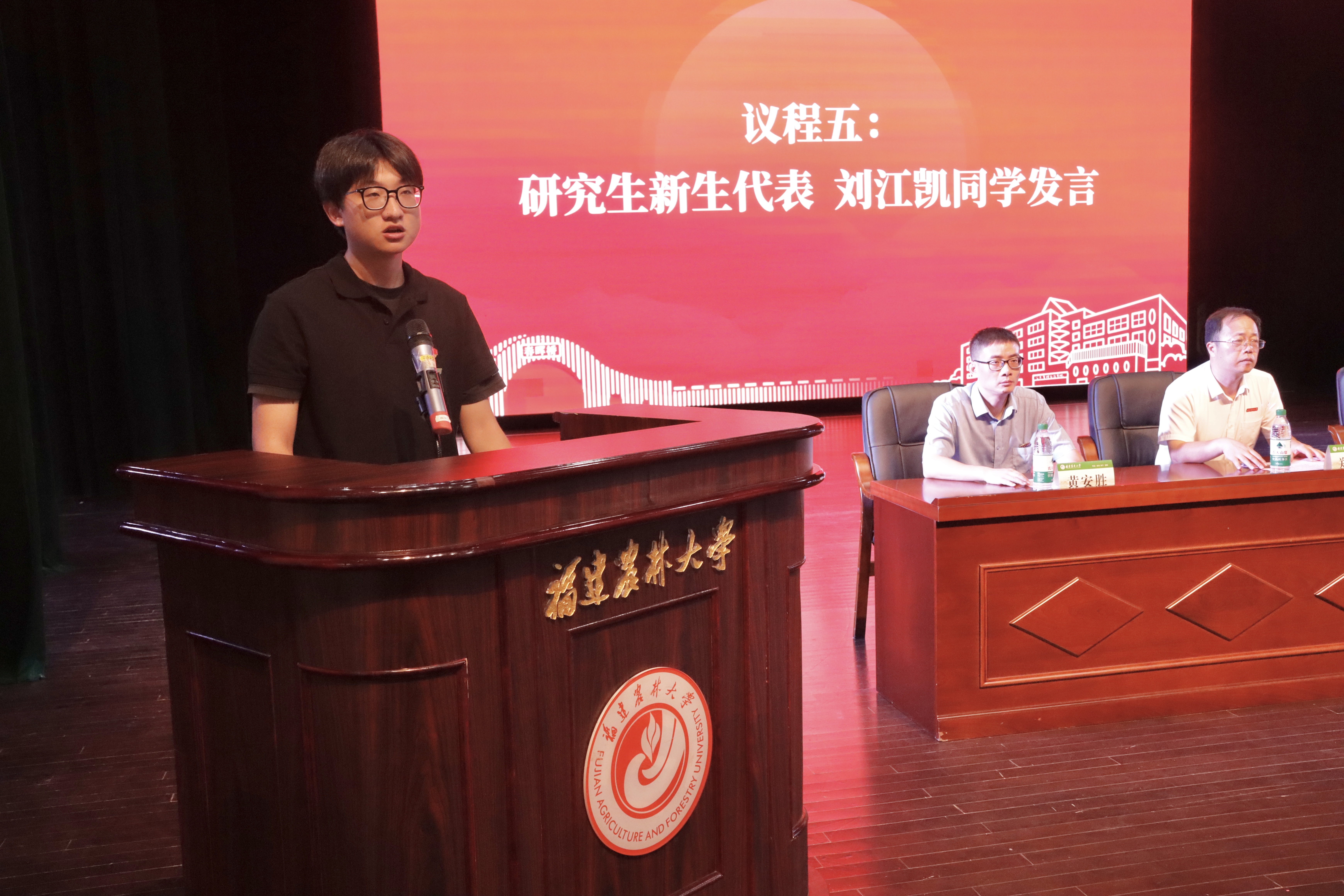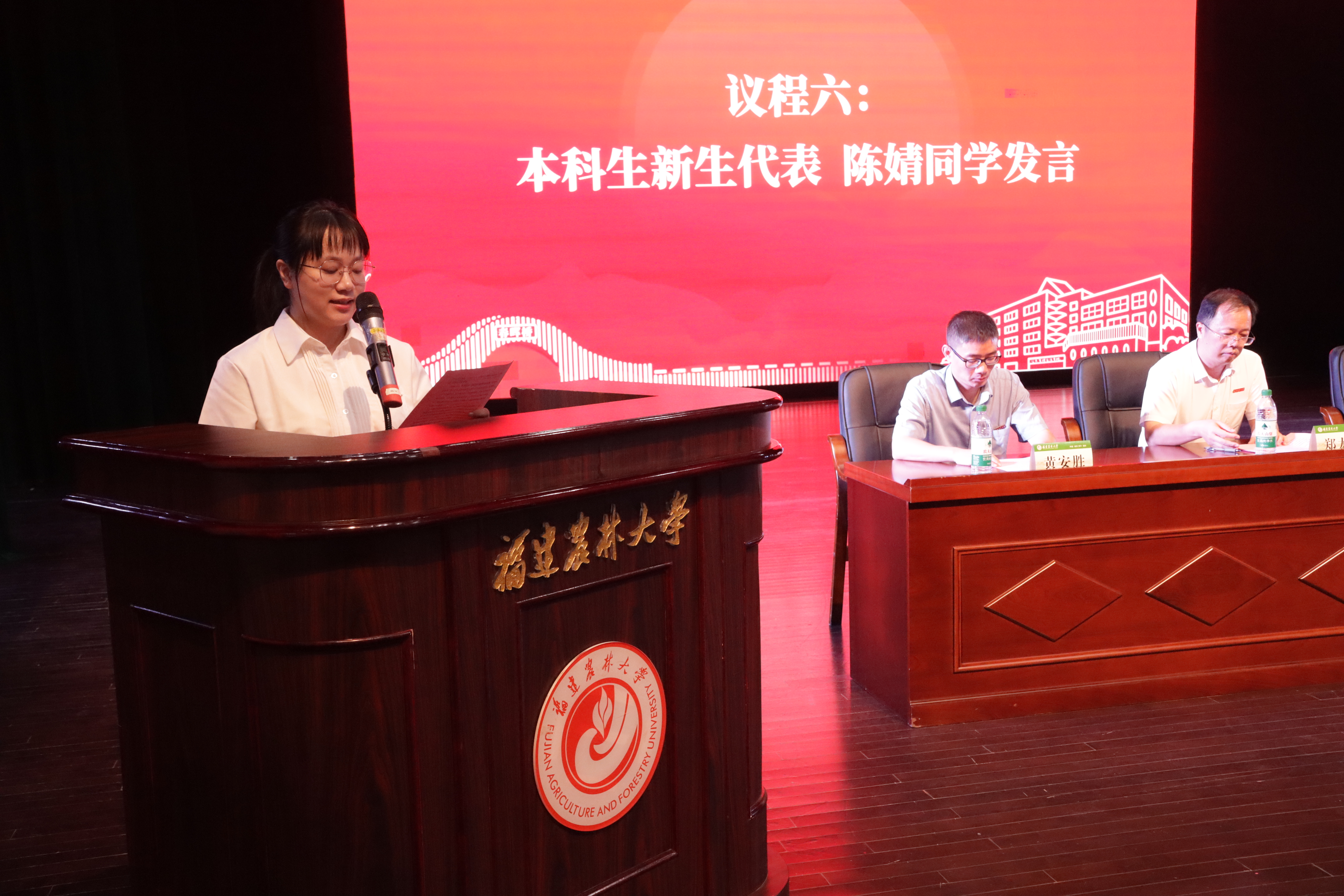 教师代表谢臻希望同学们能在老师们辛勤培育下实现自己的目标,书写属于自己人生篇章。研究生新生代表刘江凯立足自身支教经历和“立德固本,成人成己”的院训鼓励同学们扎根基层,在基层中奉献自己的青春和汗水。本科生新生代表陈婧从求知的决心和实践的勇气中鼓励同学们“以梦为马,不负韶华,启航新知,筑梦未来”。在校生代表李硕烁分享自身的大学学习和工作经历,鼓励新生们在团结中协作、在拼搏中进取,书写下无愧于青春的时代华章。