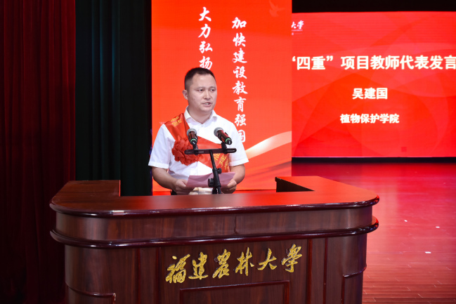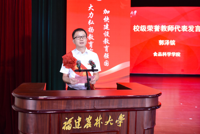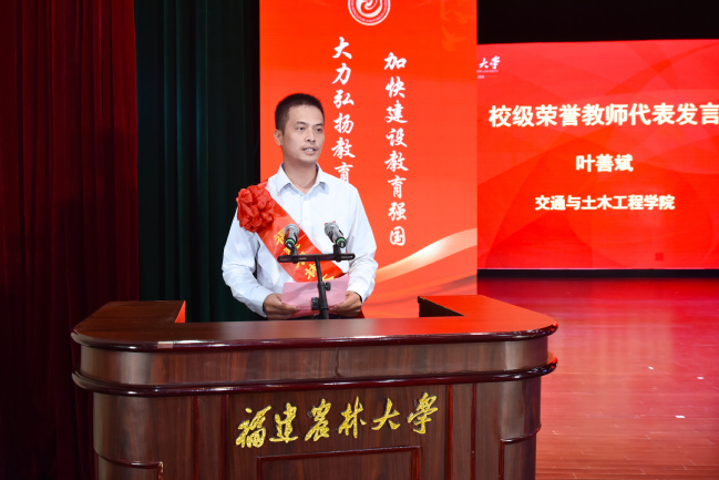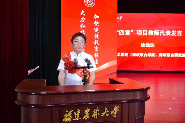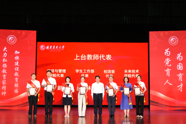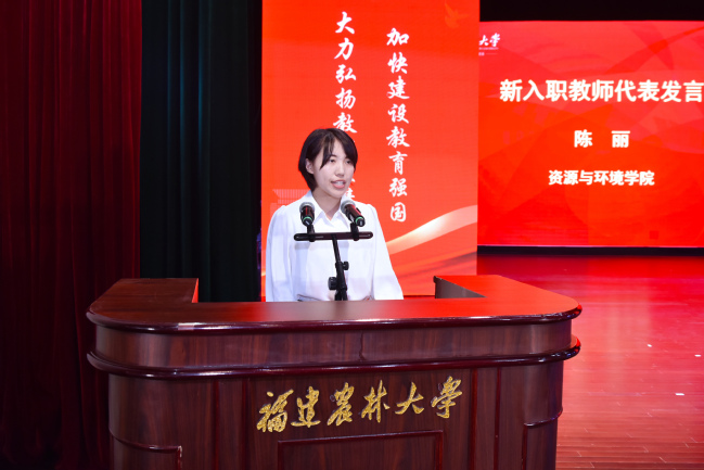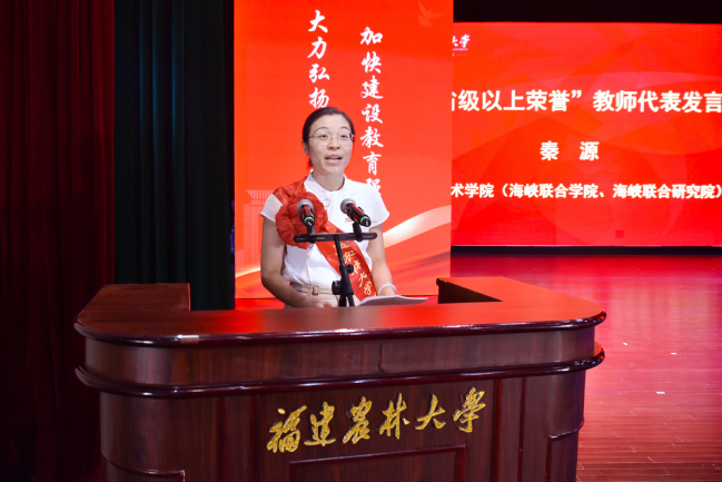 会上,新入职教师代表陈丽,获得省级以上表彰的教师代表秦源,获得“四重”项目的教师代表帅李、吴建国、徐通达,以及校优秀教师代表郭泽镔、校“最美辅导员”代表叶善斌、荣休教师代表孙威江等8位教师先后发言,表示将牢记习近平总书记殷殷嘱托,大力弘扬教育家精神,牢记为党育人、为国育才的初心使命,以奋发有为的精神状态投身教育强国建设实践,不断培育更多知农爱农新型人才,为加快建设农林特色鲜明的全国一流大学、推进中国式现代化福建实践作出新的更大贡献。