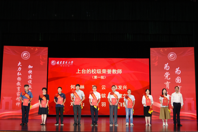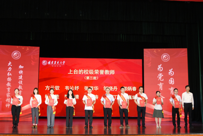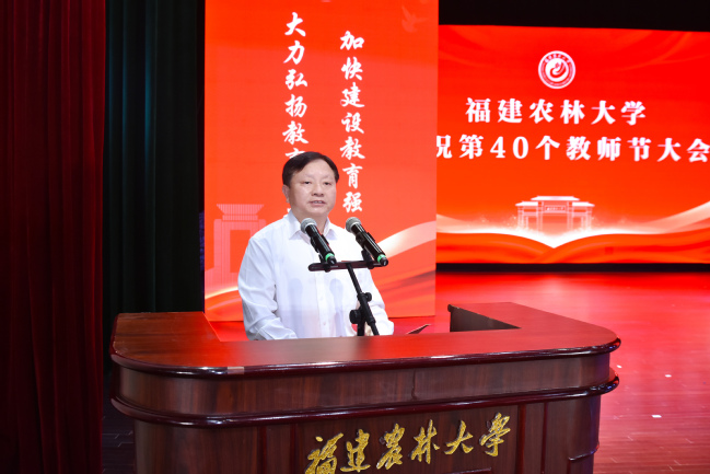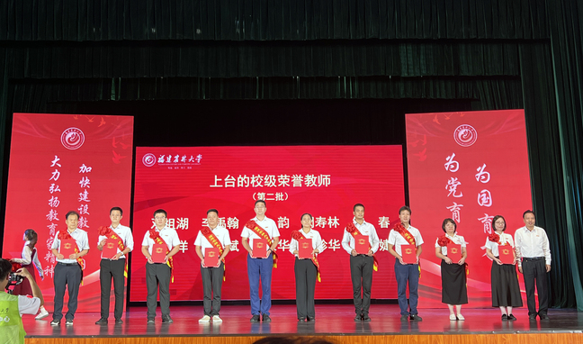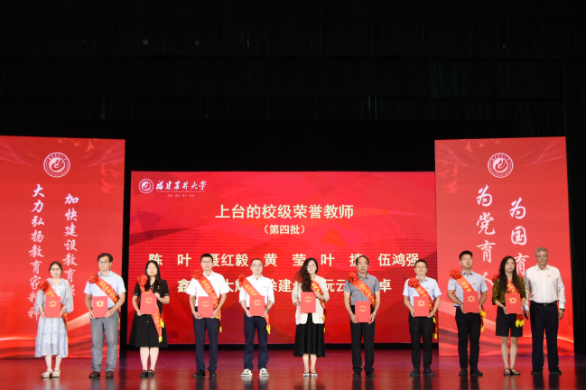 9月10日,在第40个教师节到来之际,我校在金山校区大礼堂隆重举行教师节庆祝大会,表彰过去一年在党建思政、教学科研、管理服务等各领域涌现出来的先进集体和个人,并举行新教师入职和退休教师荣休仪式。校党委书记王建南,校长兰思仁,校党委副书记陈世奎、曾华平,副校长郑宝东、林庆藩、唐振鹏、周顺桂出席会议。会议由兰思仁主持。