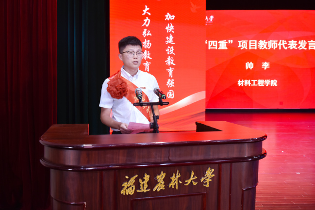 获得“四重”项目的教师代表帅李发言