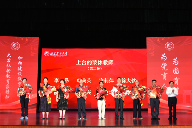 庆祝大会在旗山、安溪两个校区设立分会场。受表彰教师、荣休教师和新入职教师,全体中层干部,校关工委和老体协负责人,各学院教师代表、机关干部代表等共1000余人参加会议。