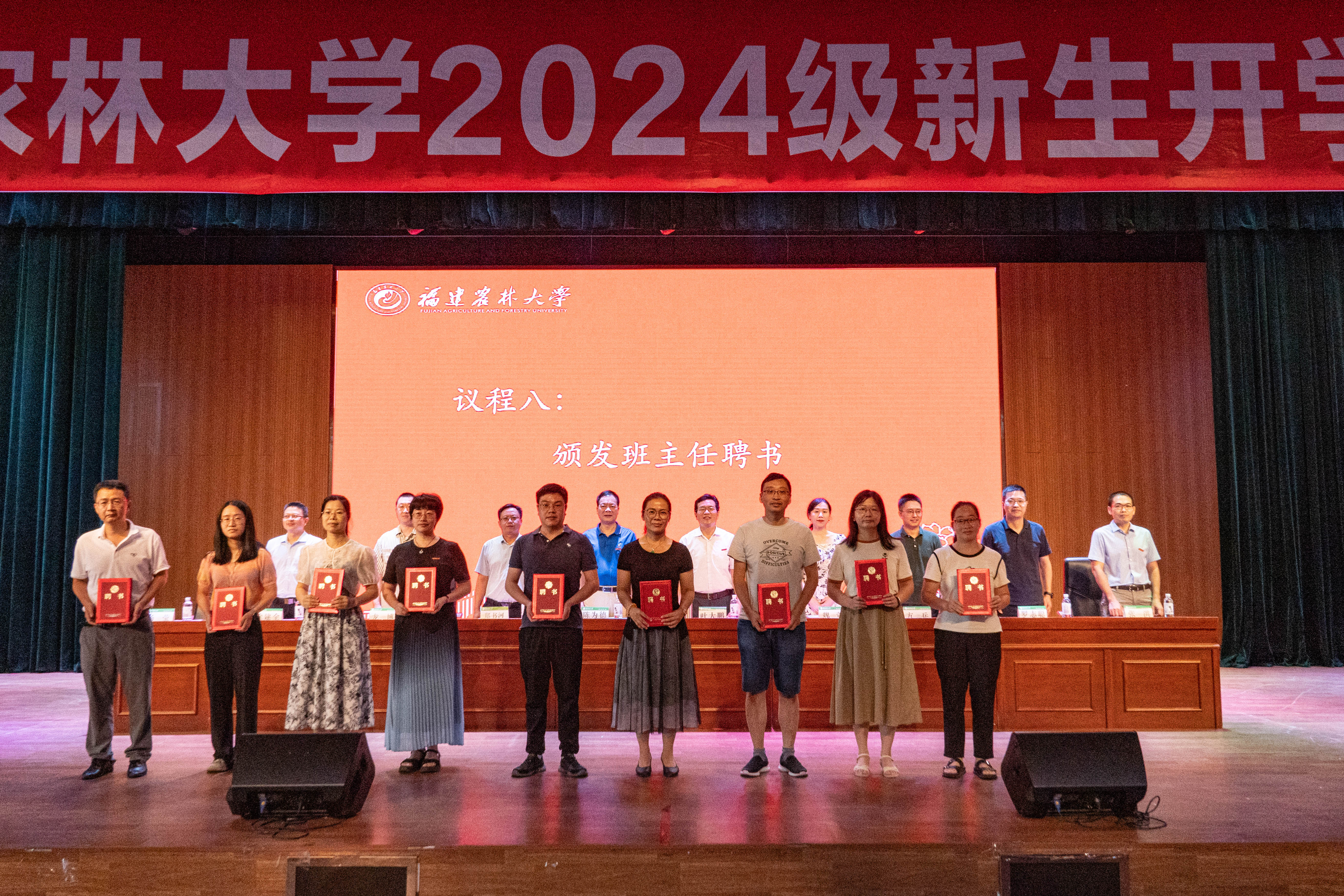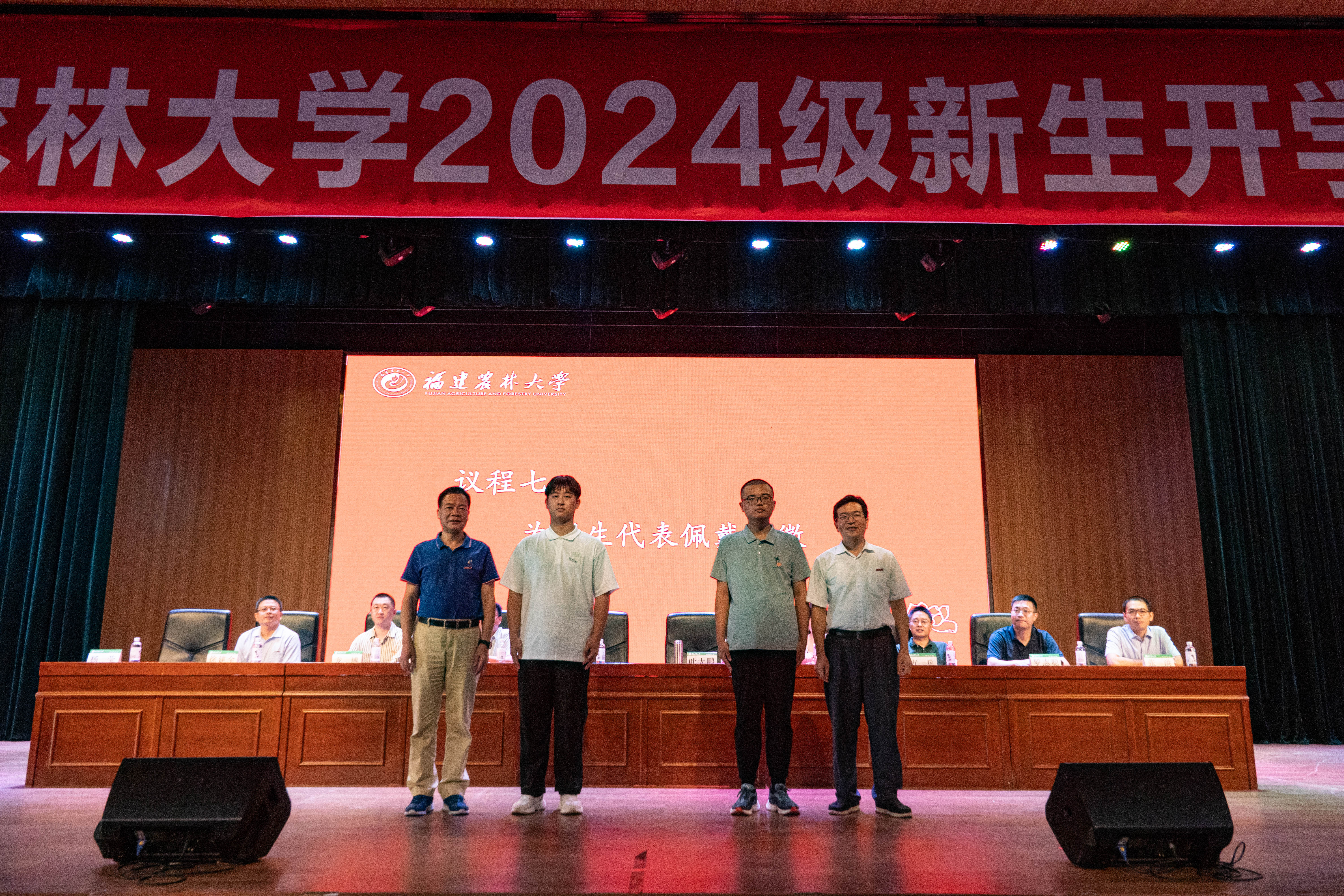 学院党委书记和院长一同为2024级新生代表佩戴校徽、为2024级新生班主任颁发聘书。开学典礼在激昂奋进的校歌声中落下帷幕。