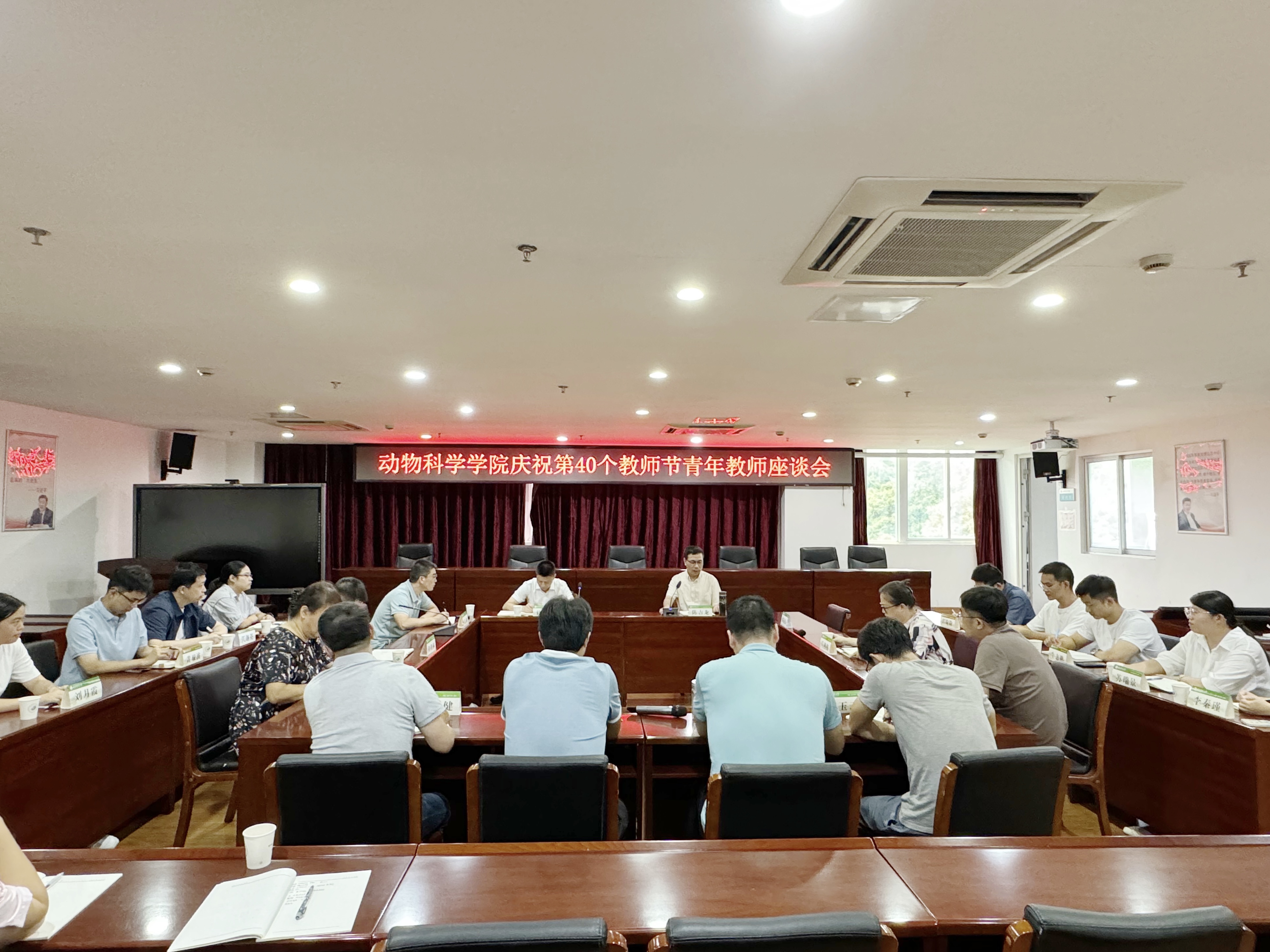 9月9日下午,动物科学学院在学院七楼会议室召开庆祝第40个教师节青年教师座谈会。学院党政领导班子、工会主席、系负责人、青年教师代表等参加座谈会。座谈会由学院党委副书记(主持工作)修新田主持。