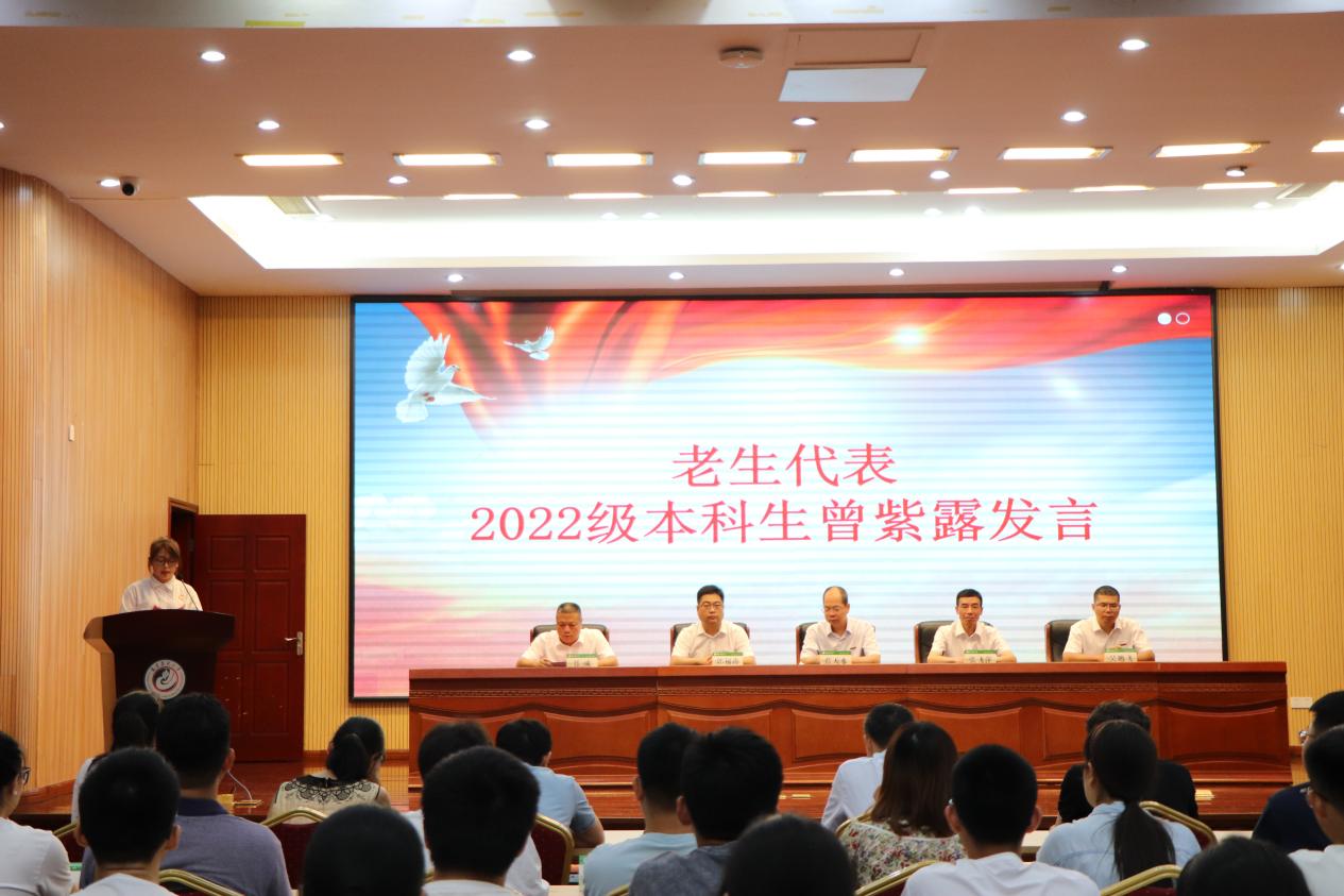 学院教师代表侯晓龙副教授、老生代表曾紫露、新生代表吴明辉依次发言,希望同学们在时代的大潮中踏浪前行,奋力奔跑,做一名求知者、守护者、奋斗者,用青春孕育出未来的无限希望。