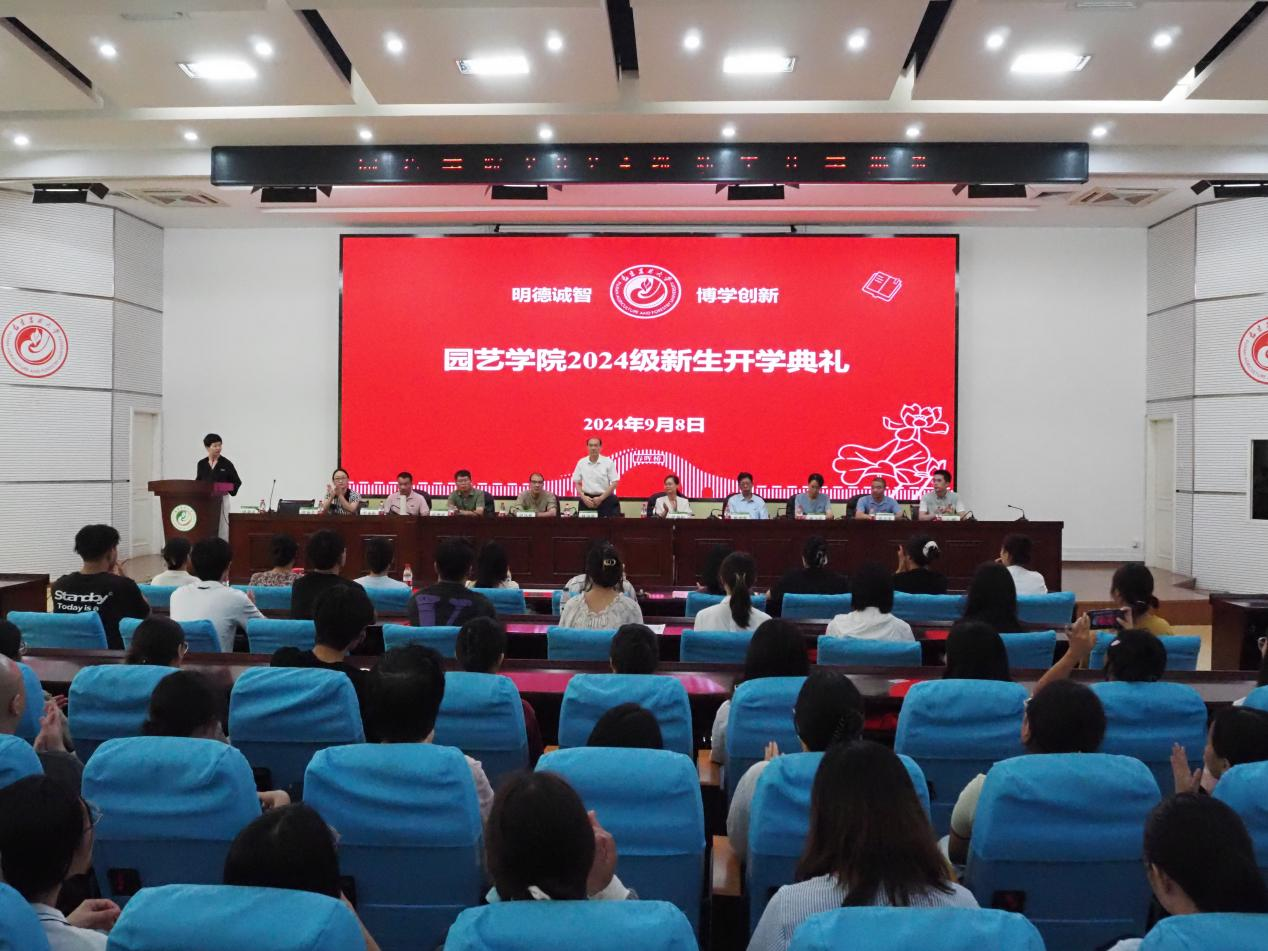 9月8日,园艺学院在禧强楼报告厅举行2024级新生开学典礼。院党委书记、院长林金科、院党委副书记康恩慧、副院长曾黎辉、副院长钟凤林、各系主任、全体辅导员、2024级班主任及2024级全体新生参加开学典礼。典礼由康恩慧主持。