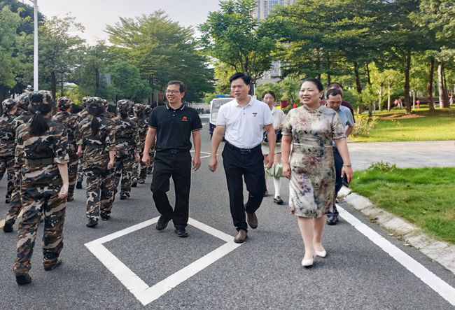 9月11日,安溪校区管委会主任黄成茂、郭玉琼,安溪校区管委会副主任张云帆、陈勇等一行人走访慰问2024级军训学生。