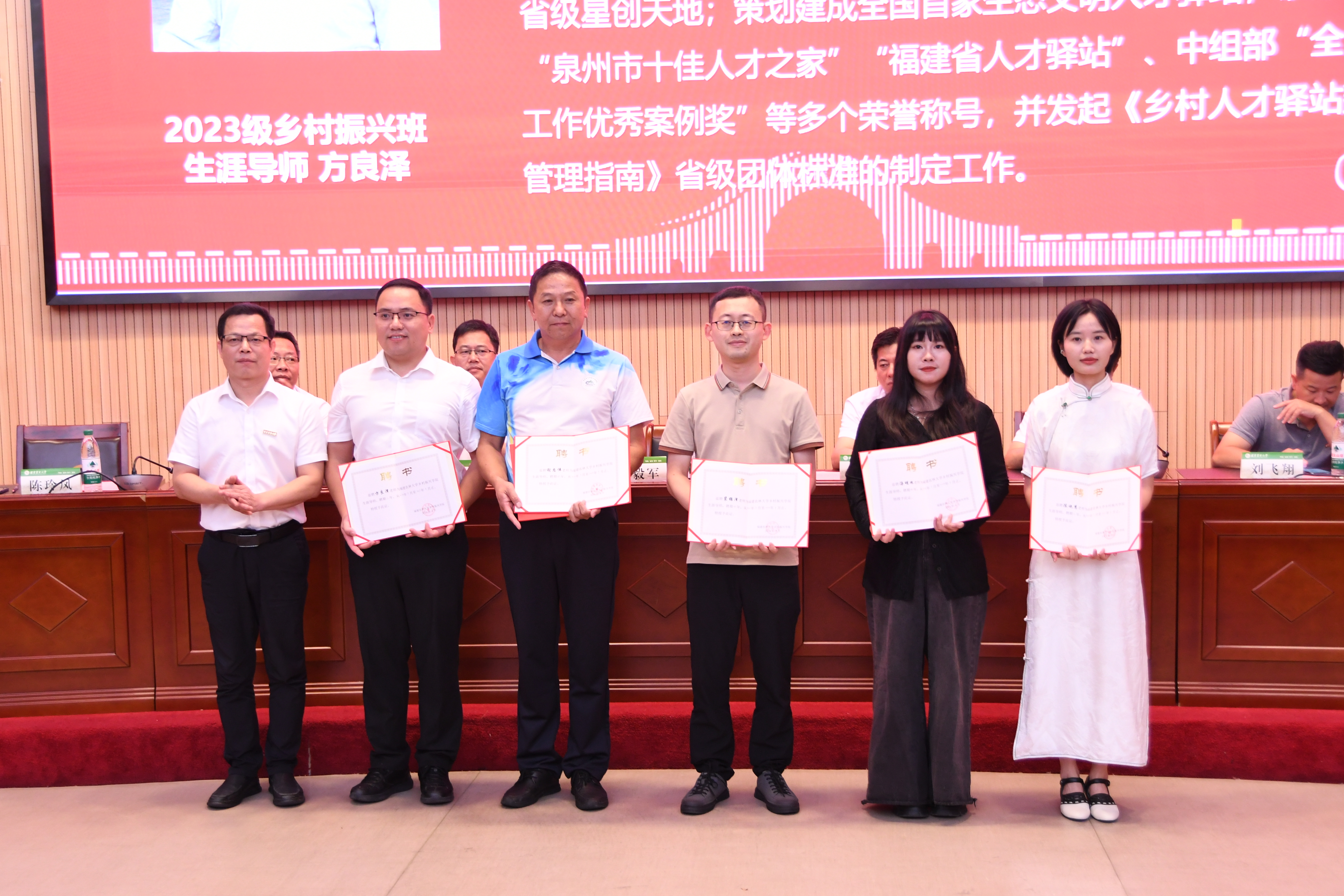 为发挥学院优秀校友在大学生专业思想和职业发展中示范者、引路人和护航者的作用,学院首次实行为本科生班级选聘生涯导师的创新举措。学院首批聘任仙游县乡村振兴研究院乡土创生部主任谢忠伟、仙游县乡村振兴研究院发展研究部主任林珊、德化县乡村振兴研究院秘书长裴锦泽、中国美术学院“乡野艺校” 常驻屏南县前汾溪村社会美育品牌联合主理人汤明珠、永泰县新时代“三农”研究院项目部主任陈施慧、永春县生态文明研究院副秘书长方良泽等6位校友为2023级、2024级本科生班级的生涯导师。