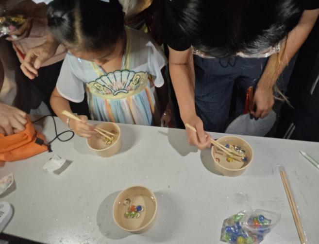 活动现场共设手写书签区和游戏区两个分区。手写书签区,工作人员在精美的书签上挥洒创意,句句祝福跃然纸上,让活动参与者感受到家的温暖。游戏区分为海底捞月和折纸游戏,海底捞月讲究“快、准、狠”,短时间内要果断夹起、快速转移;折纸游戏讲究细心、耐心与创造力,一件件作品活灵活现,可谓妙手生花。丰富多样的活动内容,既让同学们深切体验到传统文化的魅力,又使整个活动充满趣味与互动性。