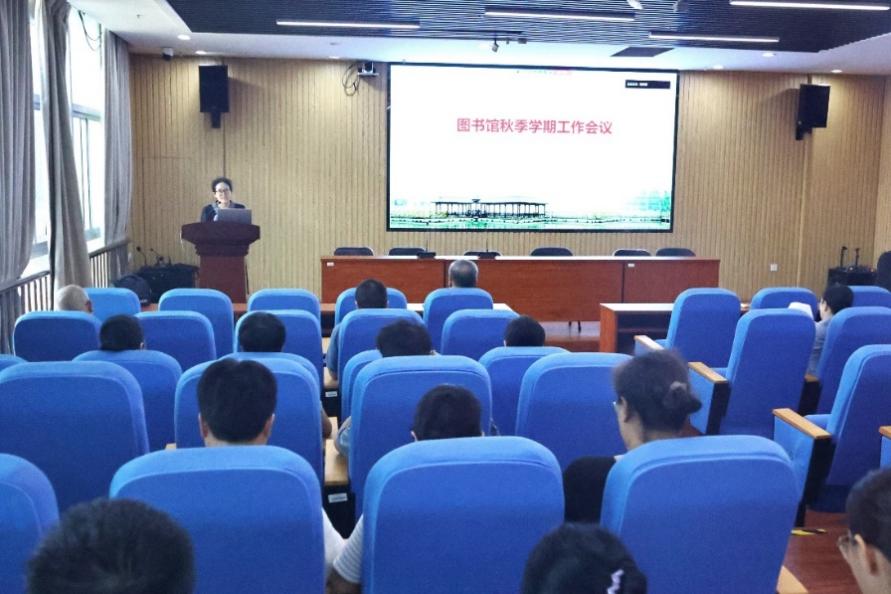 9月19日下午,图书馆在逸夫图书馆二楼视听阅览室召开秋季学期工作会议,全体教职工参加,会议由图书馆党委书记陈月霄主持。