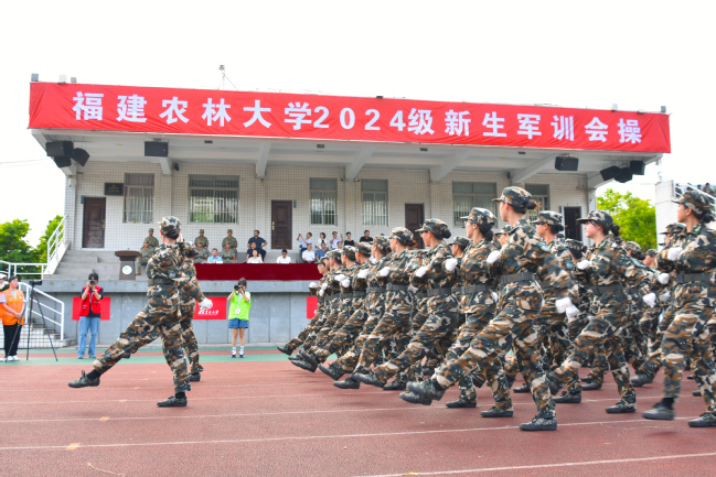 在大合唱《歌唱祖国》的歌声中,我校2024级学生军训会操圆满落下帷幕。