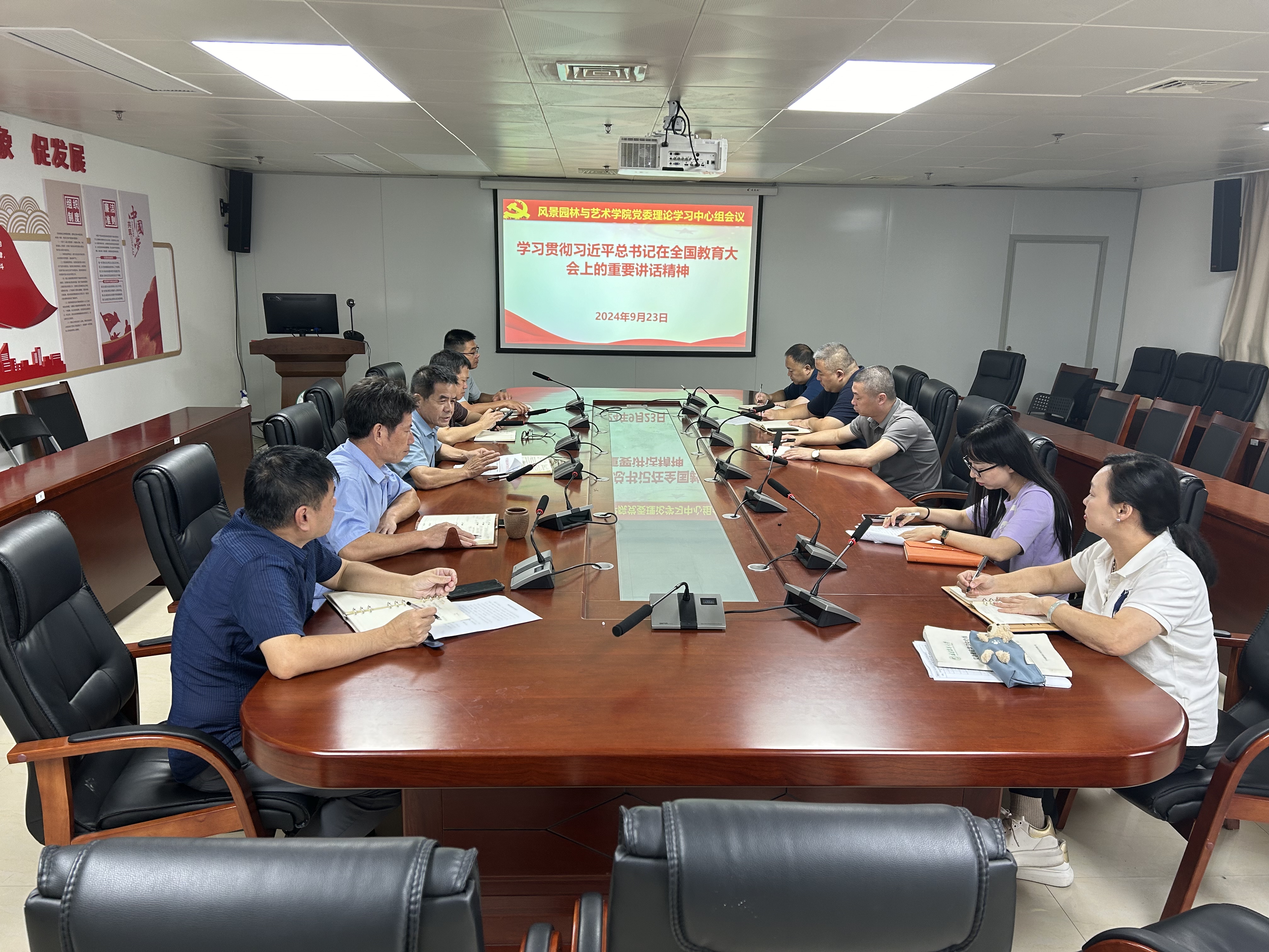 9月23日上午,风景园林与艺术学院党委在学院1102会议室召开理论学习中心组会议,专题学习习近平总书记在全国教育大会上的重要讲话精神,会议由学院党委书记雷国铨主持,理论学习中心组成员、院科级干部列席会议。