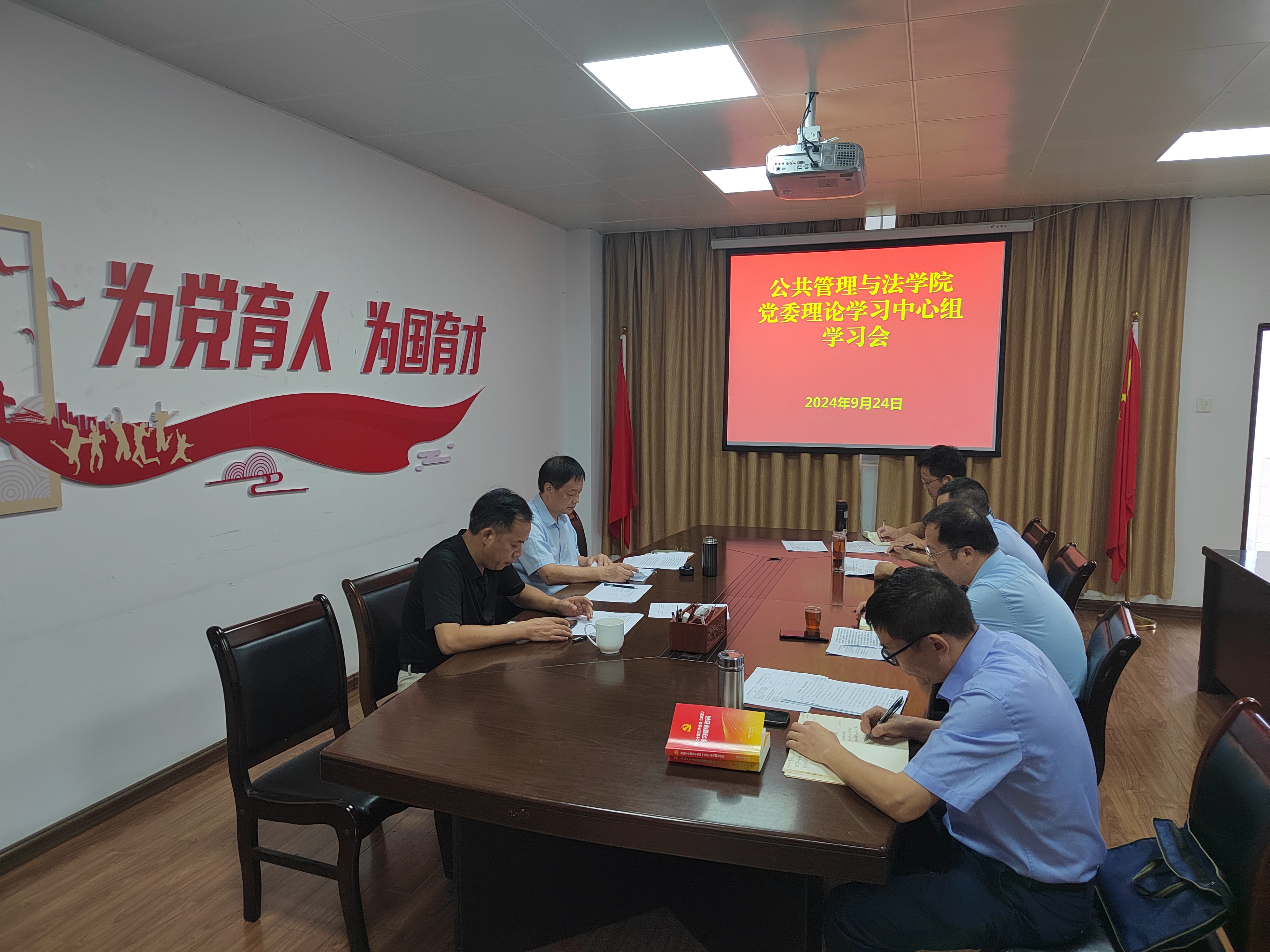 9月24日上午,公共管理与法学院党委召开理论学习中心组学习会,深入学习习近平总书记在全国教育大会上的重要讲话精神和全国教育大会精神。院党委书记曾起郁主持学习,学院党委理论学习中心组成员参加学习。