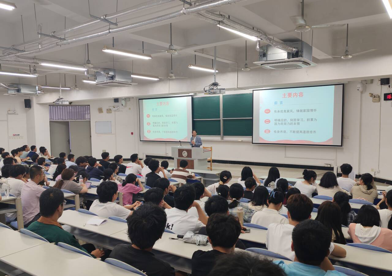 9月24日下午,计算机与信息学院关工委于田家炳楼109开展“传承优良家风,铸就家国情怀”主题讲座。学院关工委副主任张朝阳教授担任主讲嘉宾,学院各专业新生代表参加讲座。