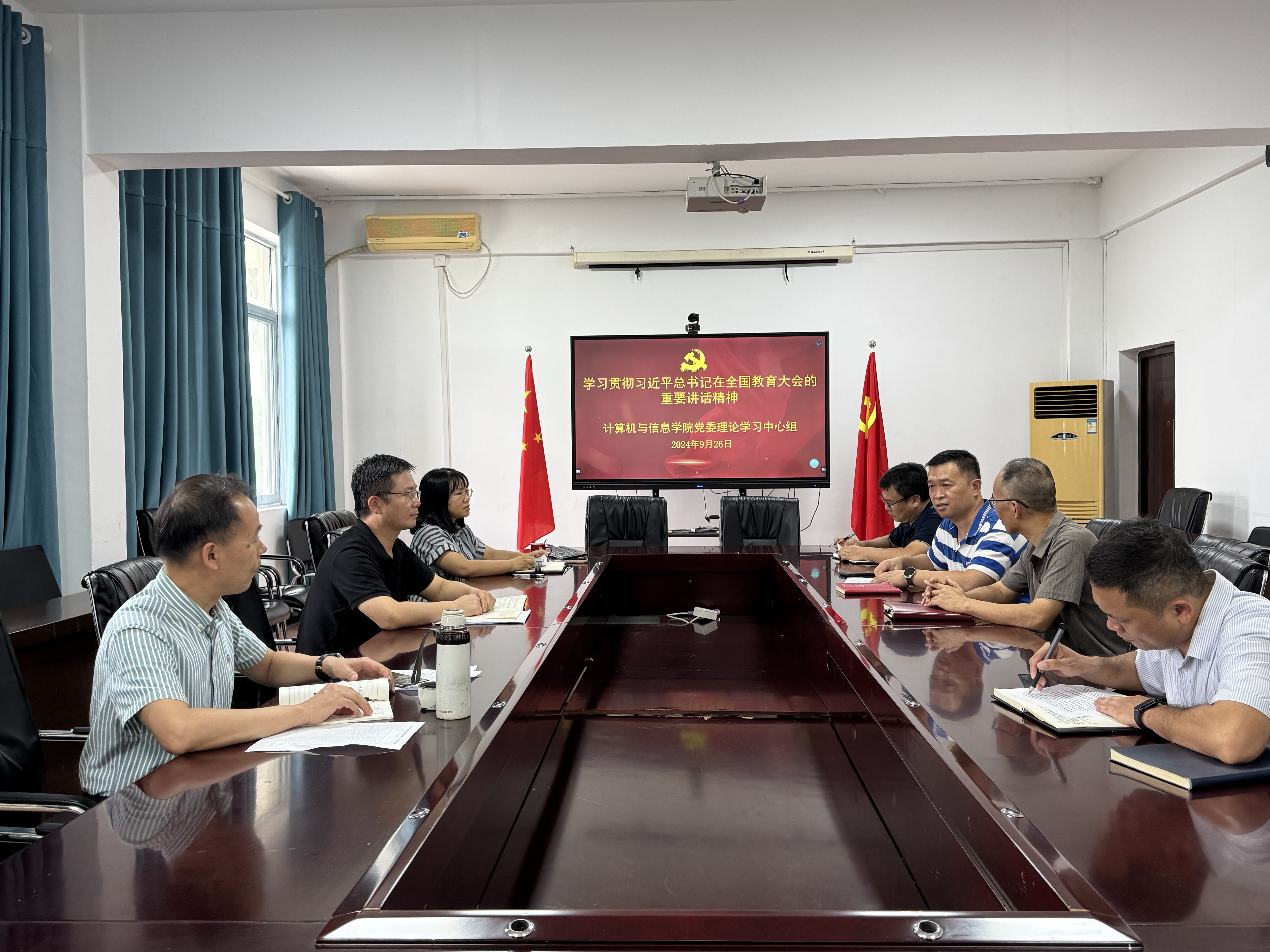 9月26日,计算机与信息学院党委在学院会议室召开理论学习中心组会议,专题学习习近平总书记在全国教育大会上的重要讲话和全国教育大会精神,研究学院关于贯彻落实校党委学习贯彻全国教育大会精神的部署要求。与会人员结合分管工作实际交流了学习体会和贯彻思路。会议由学院党委书记钟一文主持。