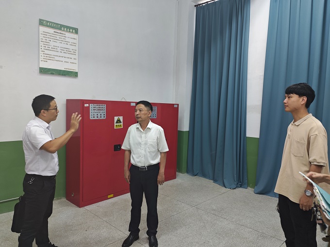 检查组先后检查了校园门岗、消防水泵房、监控室、教学楼、实验楼、电动自行车充电区、食堂、师生宿舍等重点区域,重点围绕危化品管理、危险废弃物处置、消防安全、车辆管理、饮食卫生、水电供给、防汛防涝等方面开展检查。