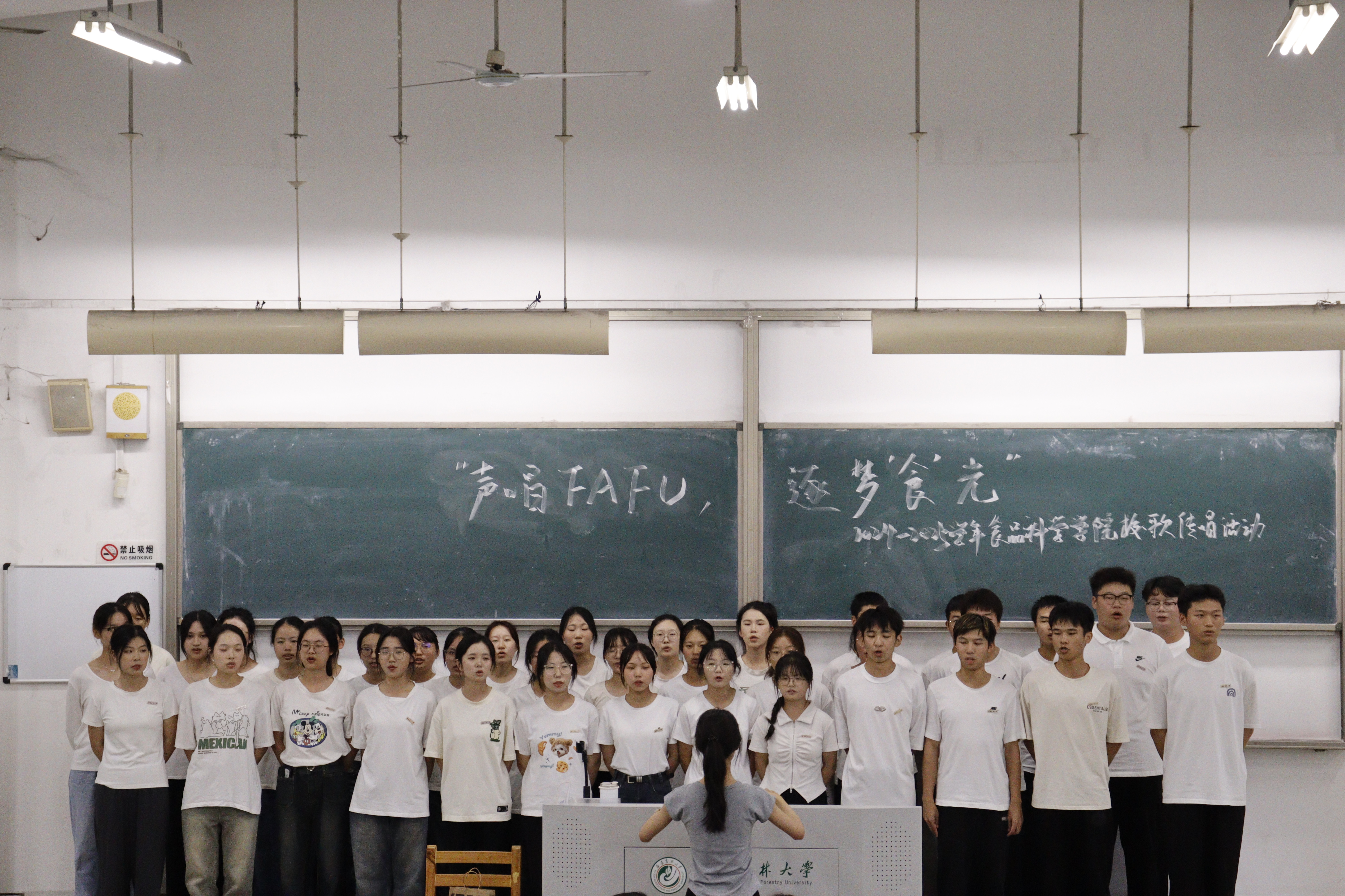 9月29日下午,在新中国成立75周年之际,食品科学学院在创新楼103教室举行校歌传唱活动。院党委副书记吴有平,2024级辅导员林河晨及全体新生参与了活动。