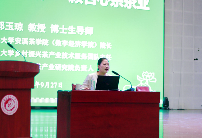 9月27日,数字经济学院在校区明德报告厅举办院长讲党课活动,邀请学院党委副书记、院长郭玉琼教授作题为《习茶研茶三十载,一颗茗心系茶业》的主题党课,新生辅导员及全体2024级新生参加了活动,活动由学院党委副书记张云帆主持。