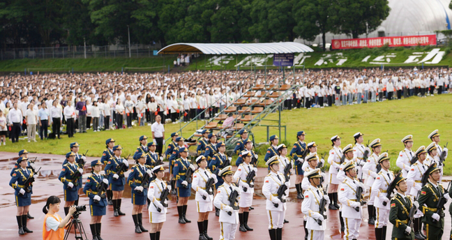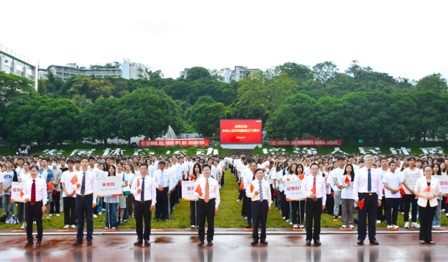 10月1日清晨,我校在金山校区、旗山校区、安溪校区田径场同步举行升国旗仪式,热烈庆祝中华人民共和国成立75周年。校党委书记王建南,校长兰思仁,校党委副书记陈世奎、曾华平,副校长郑宝东、林庆藩、唐振鹏、周顺桂,校纪委书记陈艳在金山校区参加。全体中层干部、政工干部和各学院学生代表共10000余人参加升国旗仪式。升国旗仪式由曾华平主持。