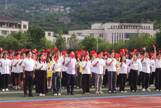 晨光熹微、朝暾初露。校领导与师生代表整齐列队、精神抖擞,国旗护卫队英姿挺拔、整装待发。7时许,升国旗仪式正式开始,国旗护卫队迈着整齐划一、铿锵有力的步伐,昂首阔步护卫国旗入场。伴随着雄壮激昂的《义勇军进行曲》,鲜艳的五星红旗冉冉升起、迎风飘扬。全体师生面向国旗行注目礼,齐声高唱中华人民共和国国歌,向伟大的祖国致敬。